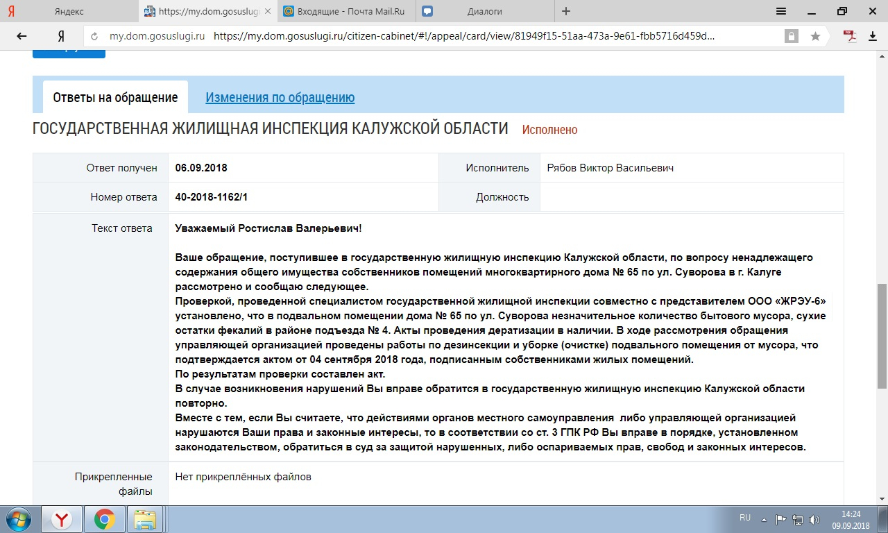 Номер жалобы:40294 Тип жалобы:Иные проблемы ЖКХ Название объекта:Крысы Город:Калуга Адрес:Калуга, улица Суворова, 65 Описание жалобы:Обещали потравить всех крыс. Все ровно в квартиру ползут крысы.