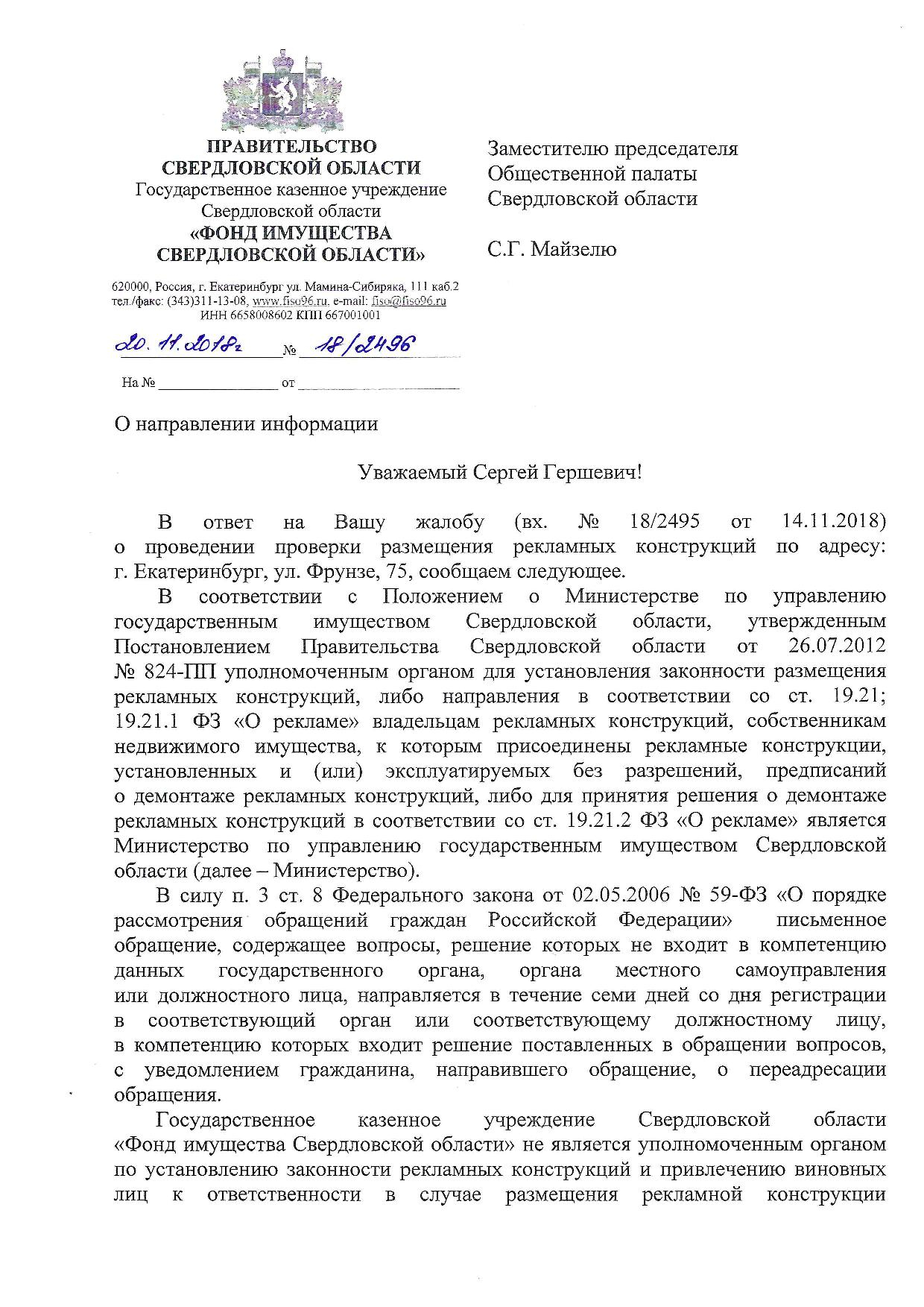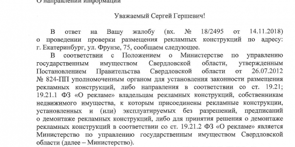 Номер жалобы:44782 Тип жалобы:Прочее Название объекта:Мугисо Регион:Свердловская область Город:Екатеринбург Адрес:ул. Фрунзе, 75 Описание жалобы:Рекламные щиты Екатеринбург, Фрунзе 75, около гимназии 70 Статус: