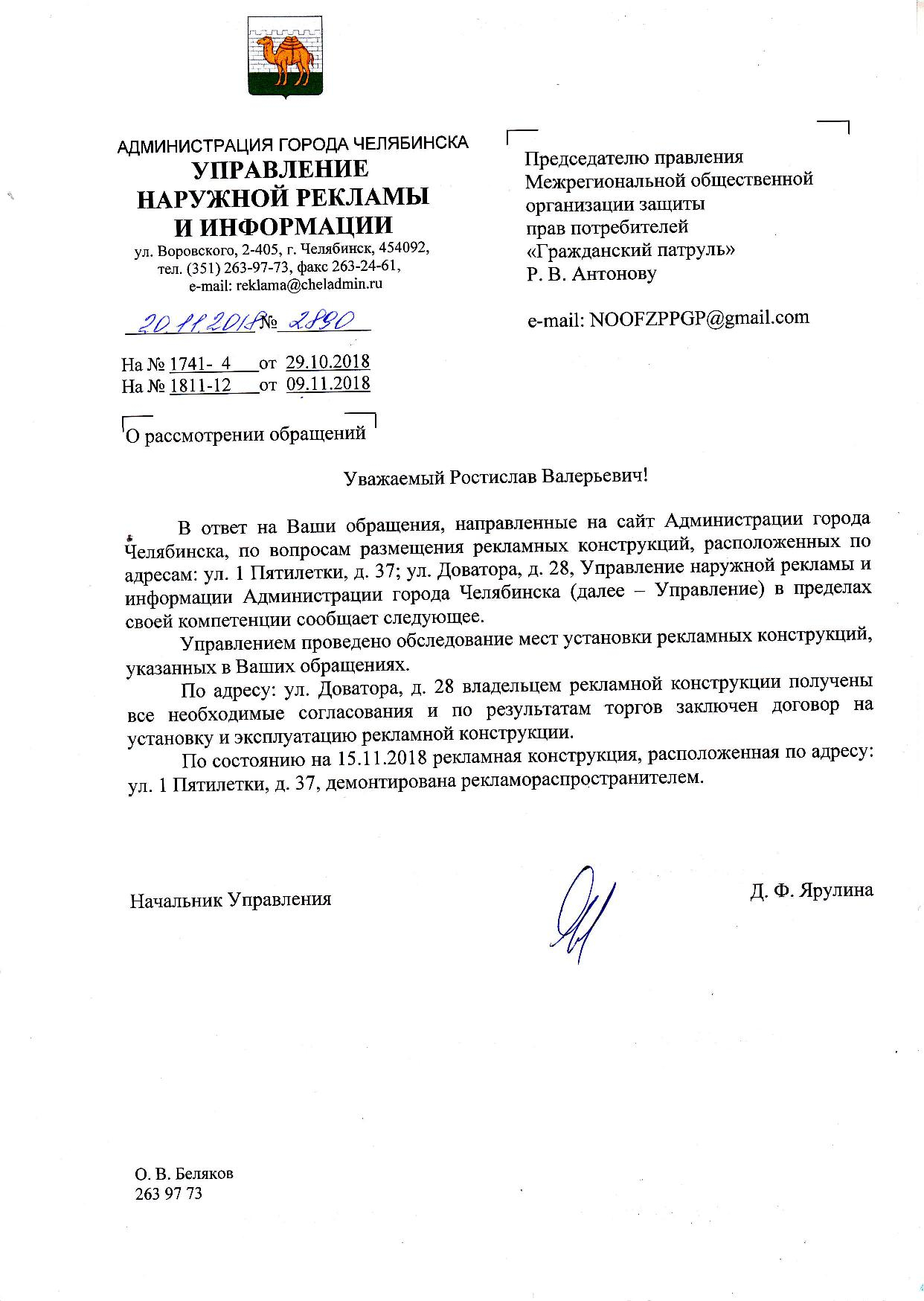 Номер жалобы:44526 Тип жалобы:Прочее Название объекта: Управление наружной рекламы и информации Администрации города Челябинска Регион:Челябинская область Город:Челябинск Адрес:улица Доватора, 28 Описание жалобы:Заявление о нарушении законодательства о рекламе