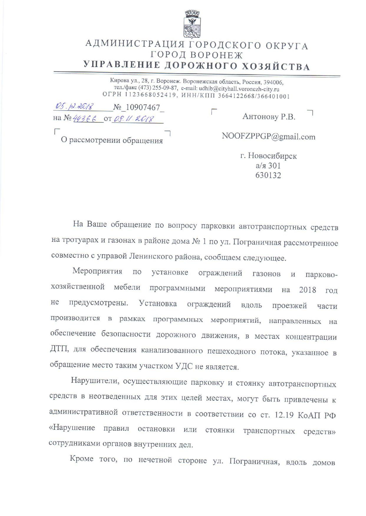 Номер жалобы:44366 Тип жалобы:Прочее Название объекта:Управление ГИБДД по Воронежской Области Регион:Воронежская область Город:Воронеж Адрес:Пограничная ул., 1 Описание жалобы:Парковка на газоне Статус: