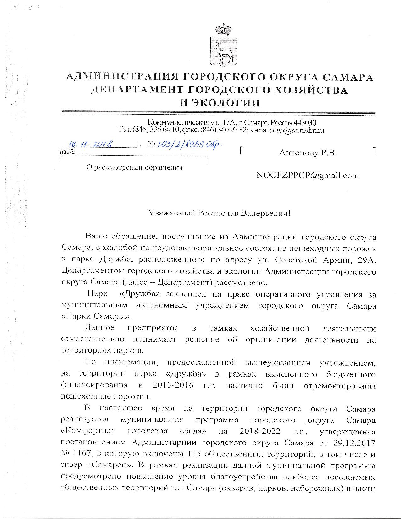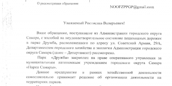 Номер жалобы:44080 Тип жалобы:Прочее Название объекта:? Регион:Самарская область Город:Самара Адрес:ул. Советской Армии, 29А Описание жалобы:Разрушенная дорожка в парке Статус: