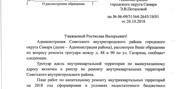 Номер жалобы:43887 Тип жалобы:Прочее Название объекта:? Регион:Самарская область Город:Самара Адрес:ул. Гагарина, 88А Описание жалобы:Проезд во дворе Статус: