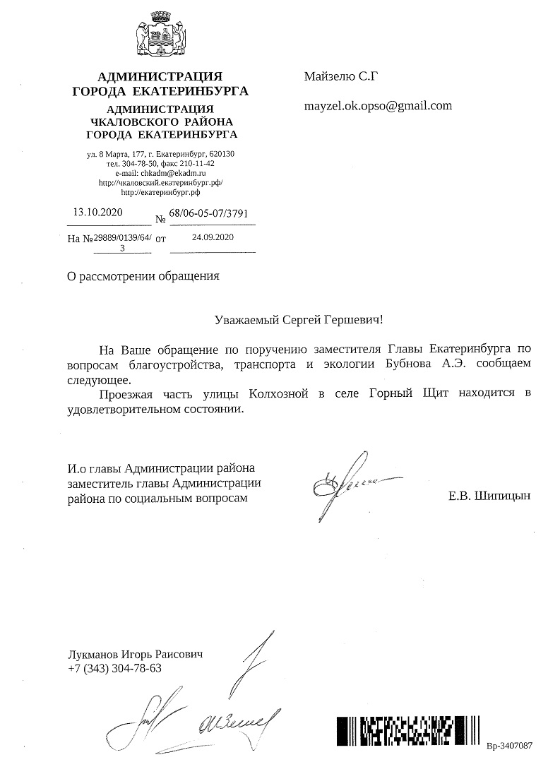 Номер жалобы:69179 Тип жалобы:Прочее Название объекта:мэрия Регион:Свердловская область Город:село Горный Щит Адрес:Колхозная улица, 14 Описание жалобы:Необходимо восстановление асфальтового покрытия на проезжей части улицы Колхозной. Статус: