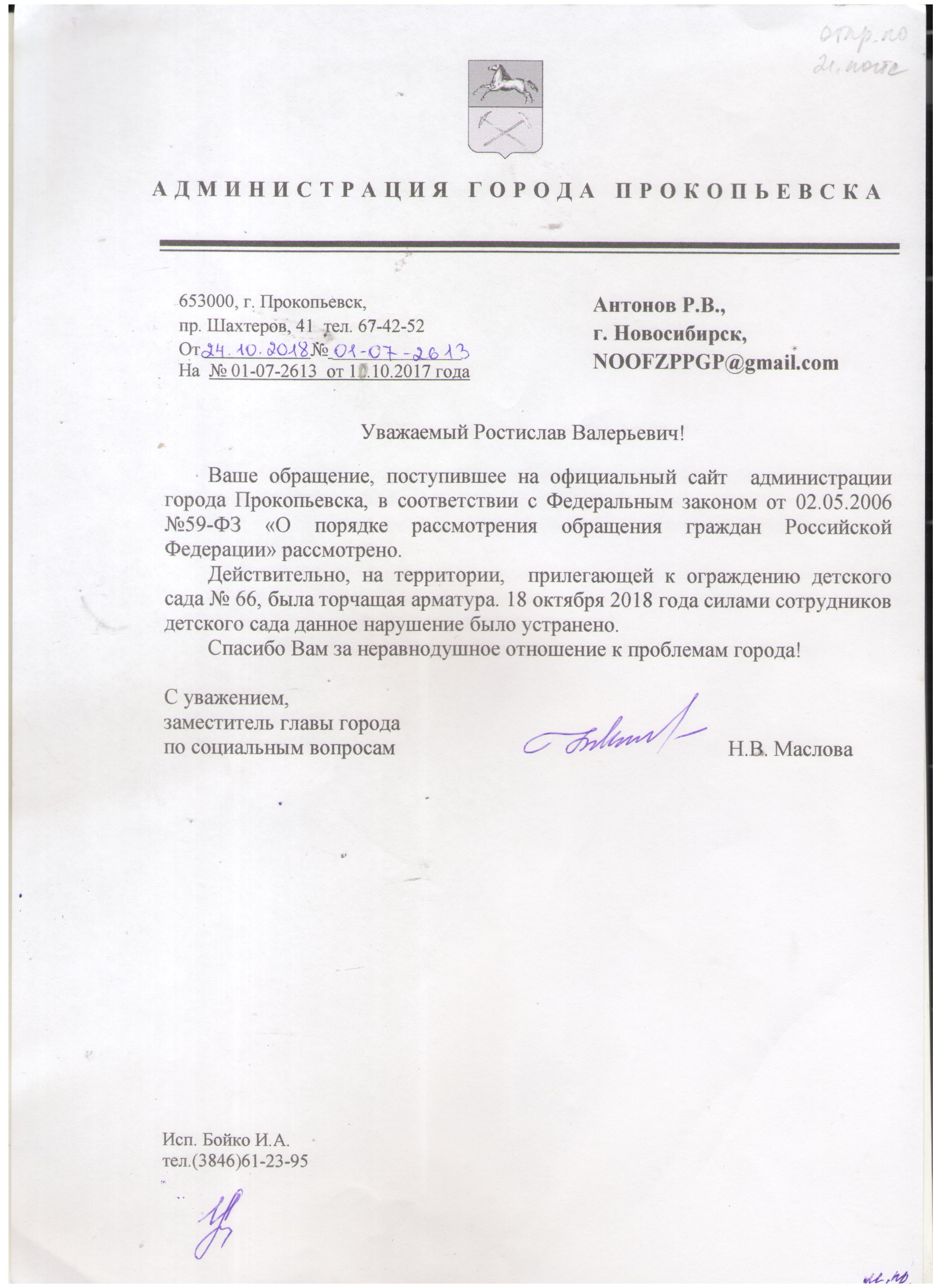 Номер жалобы:42546 Тип жалобы:Прочее Название объекта:10 Регион:Кемеровская область Город:Прокопьевск Адрес:ул. Союзная, 1 Описание жалобы:Торчащие арматура, за забором детского садика Статус: