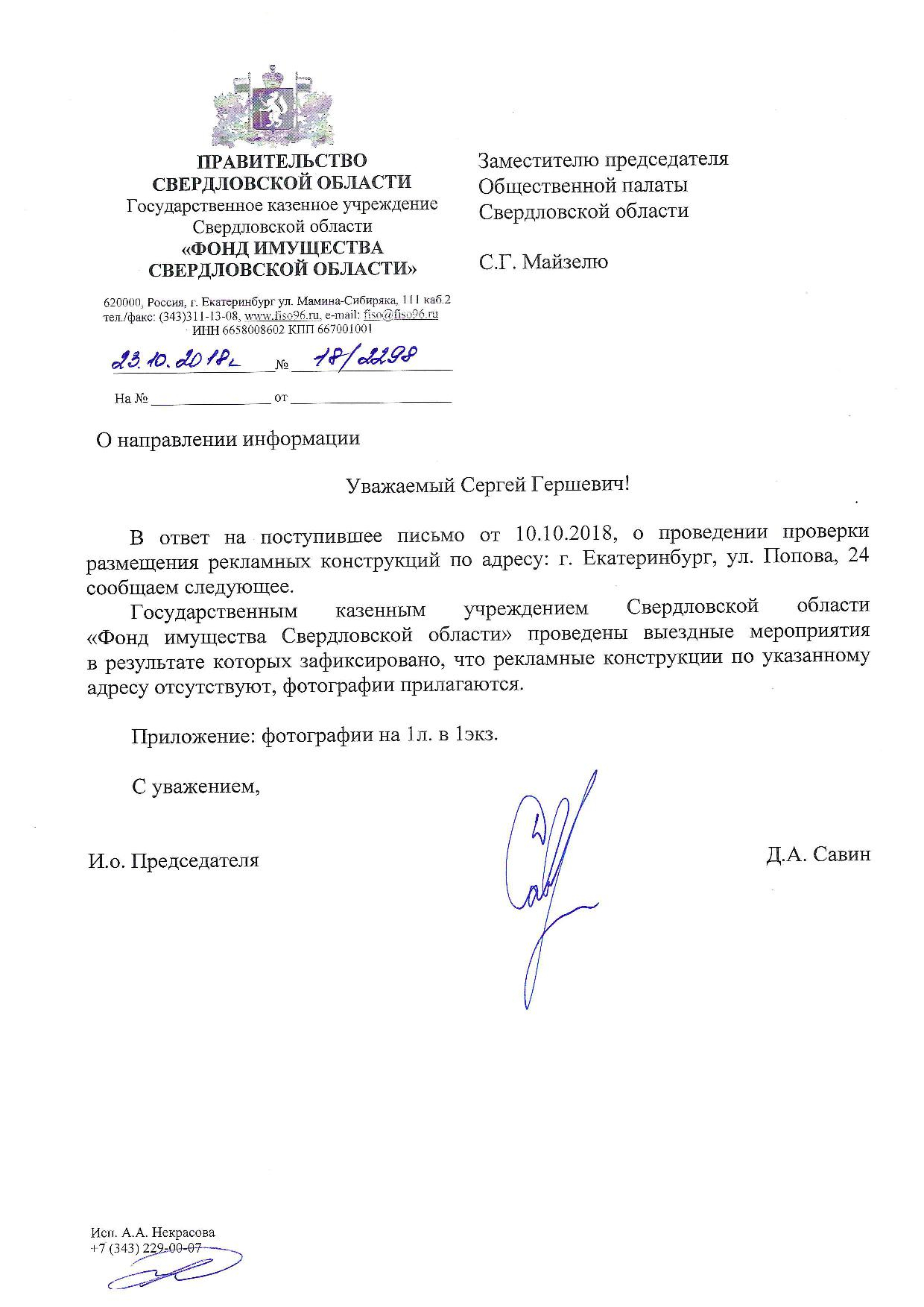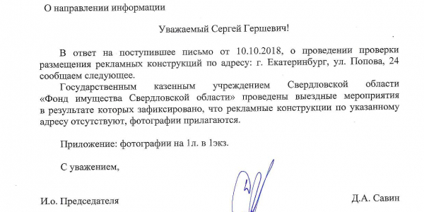 Номер жалобы:42550 Тип жалобы:Прочее Название объекта:Администрация Екатеринбурга Город:Екатеринбург Адрес:Екатеринбург, 24 улица Попова Описание жалобы:Просьба проверить законность установленных афишных стендов на пересечении улиц Попова и Московская. Афиши расположены прямо рядом с светофором, мешают нормальному обзору и портят общий вид улицы. Статус: