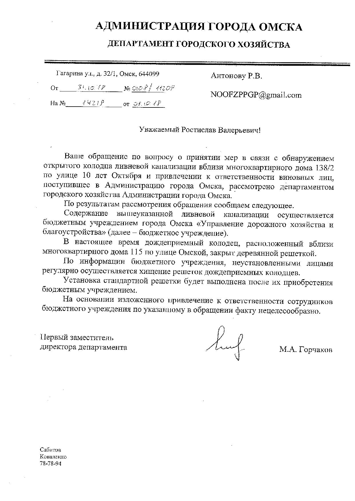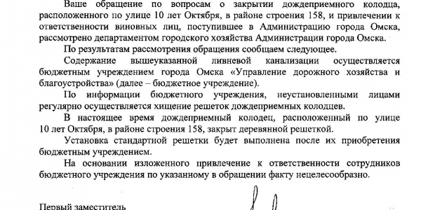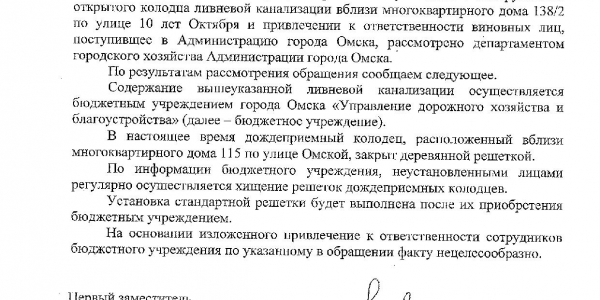 Номер жалобы:42462 Тип жалобы:Прочее Название объекта:? Регион:Омская Город:Омск Адрес:ул. 10 лет Октября, 138 корпус 2 Описание жалобы:И опять деревяшки на ливневке. Просто пиздец какой то с этими крышками. На счет адреса не уверен. Получается левее от указанного если смотреть на дорогу Статус: