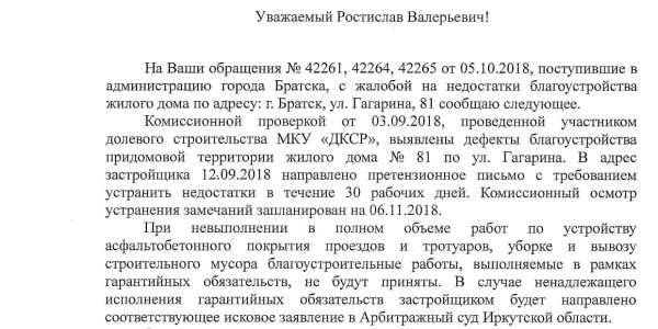 Номер жалобы:42264 Тип жалобы:Прочее Название объекта:Программа Переселения Регион:Иркутская область Город:Братск Адрес:ул. Гагарина, 17-а Описание жалобы:У домов по программе переселения не сделана отделка лестниц, не положен асфальт, оставлен строительный мусор. Гагарина, 81 Статус: