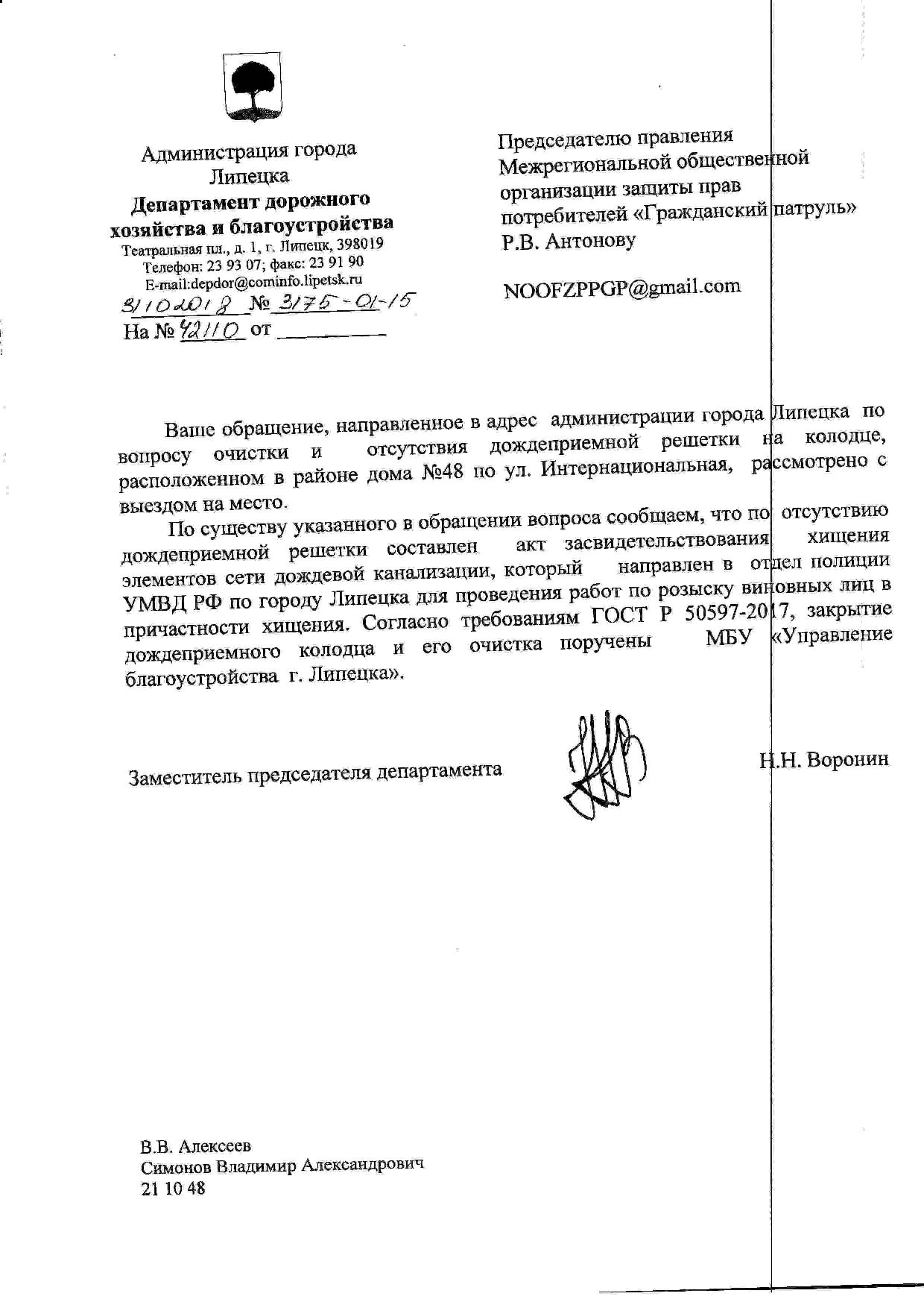 Номер жалобы:42110 Тип жалобы:Прочее Название объекта:М Регион:Липецкая область Город:Липецк Адрес:ул. Интернациональная, 48 Описание жалобы:Забита ливневка, нет решетки Статус: