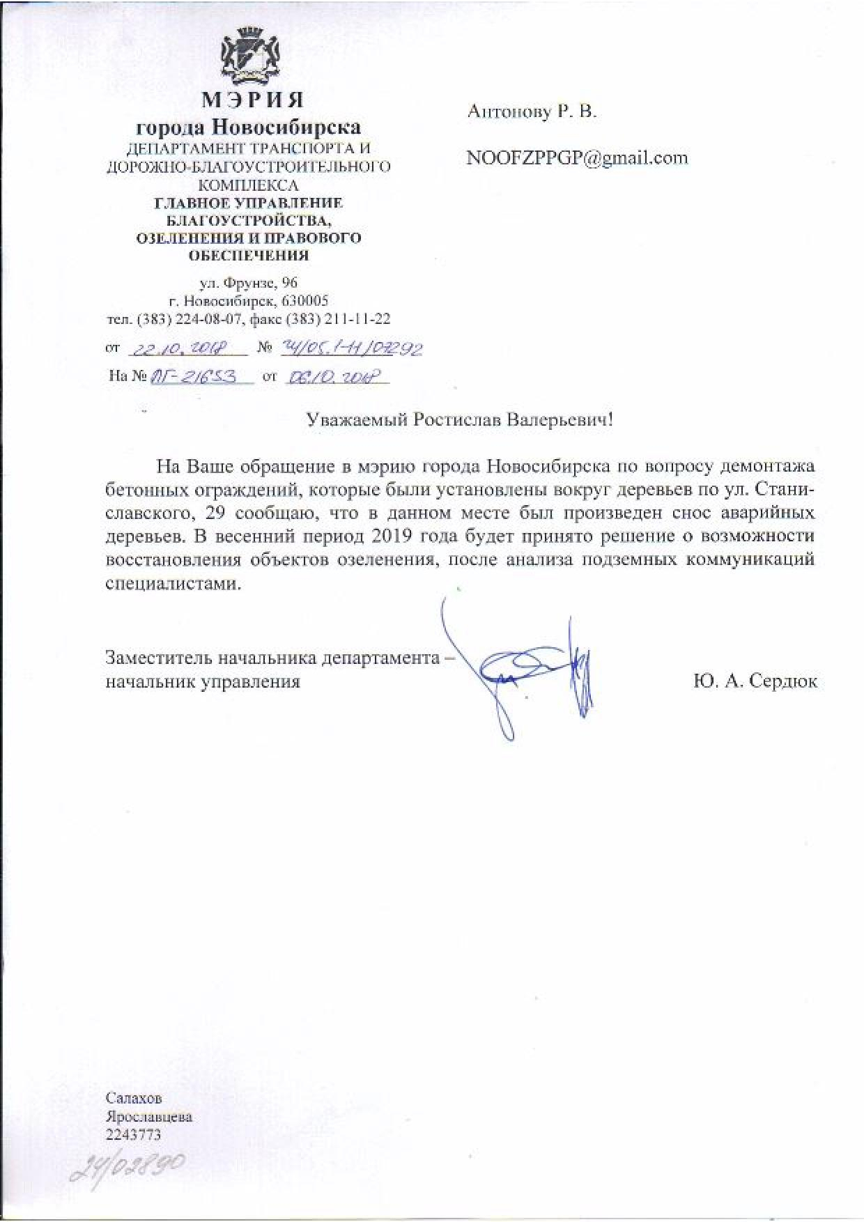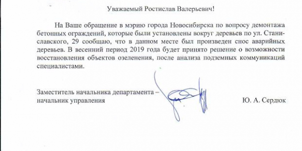 Номер жалобы:42042 Тип жалобы:Прочее Название объекта:Не Установлено Регион:Новосибирская область Город:Новосибирск Адрес:ул. Станиславского, 29 Описание жалобы:Необходимо демонтировать бетонные клумбы которые раньше были вокруг деревьев. Деревья выкорчеваны, а ограждение осталось, что затрудняет проход пешеходов и движение с детскими колясками Статус: