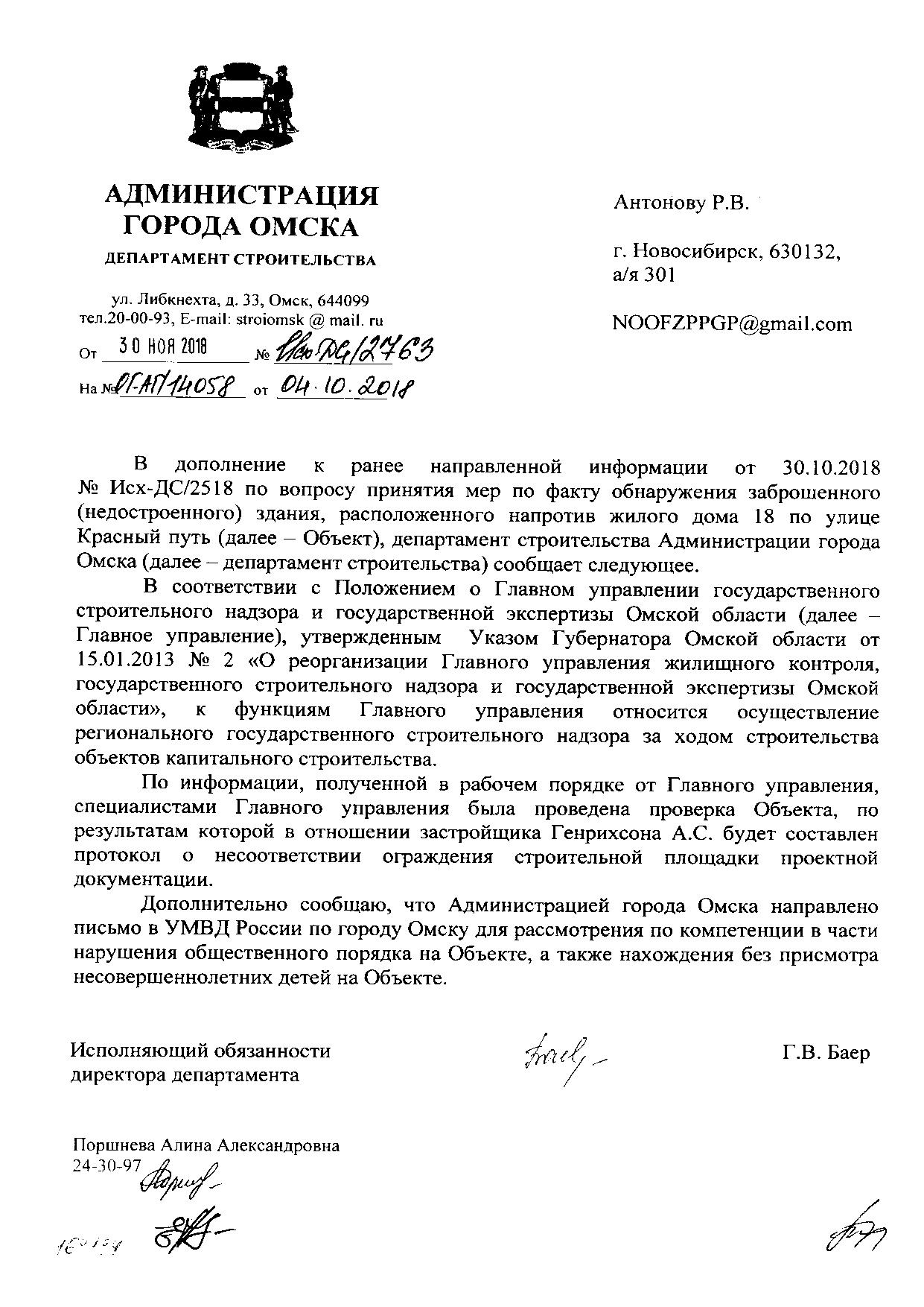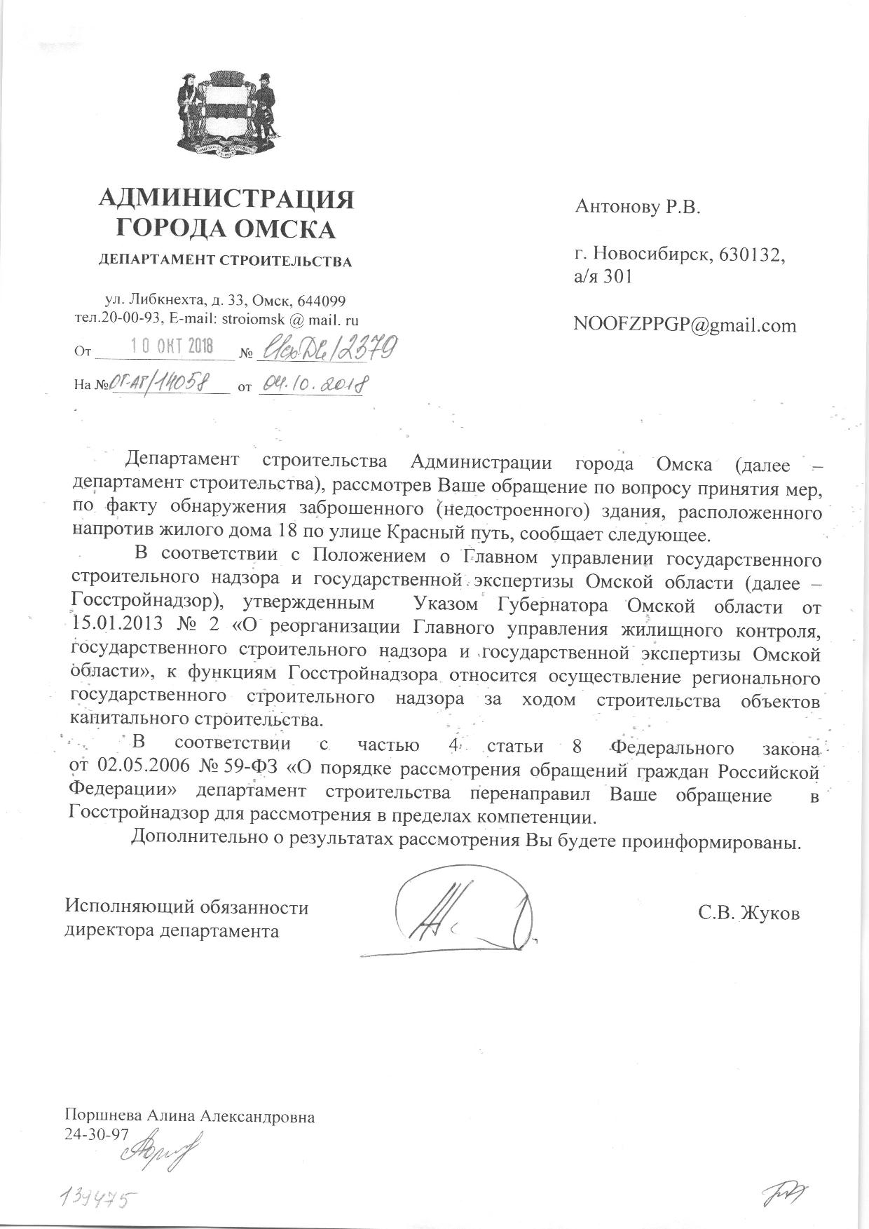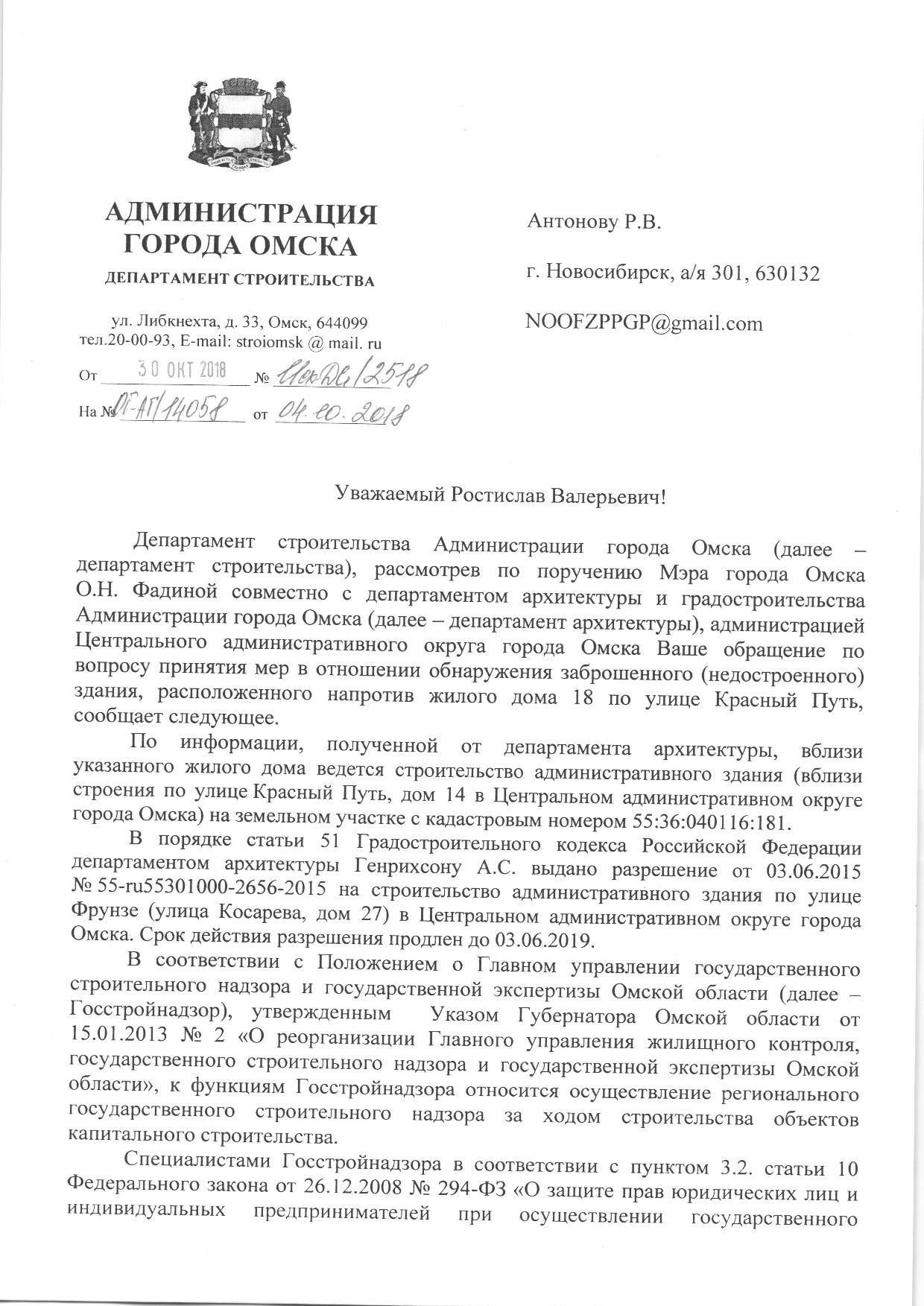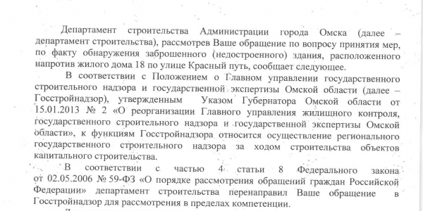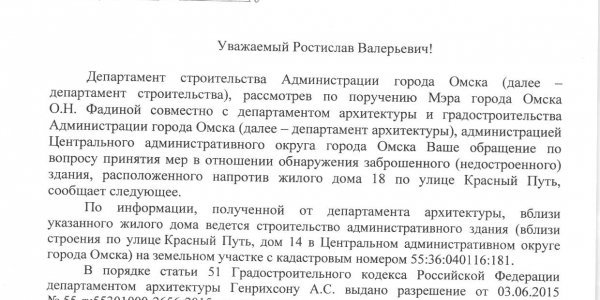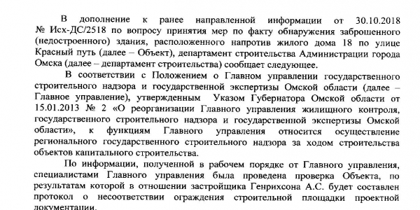 Номер жалобы:42049 Тип жалобы:Прочее Название объекта:Мэрия Регион:Омская область Город:Омск Адрес:ул. Красный Путь, 18 Описание жалобы:Недострой Статус: