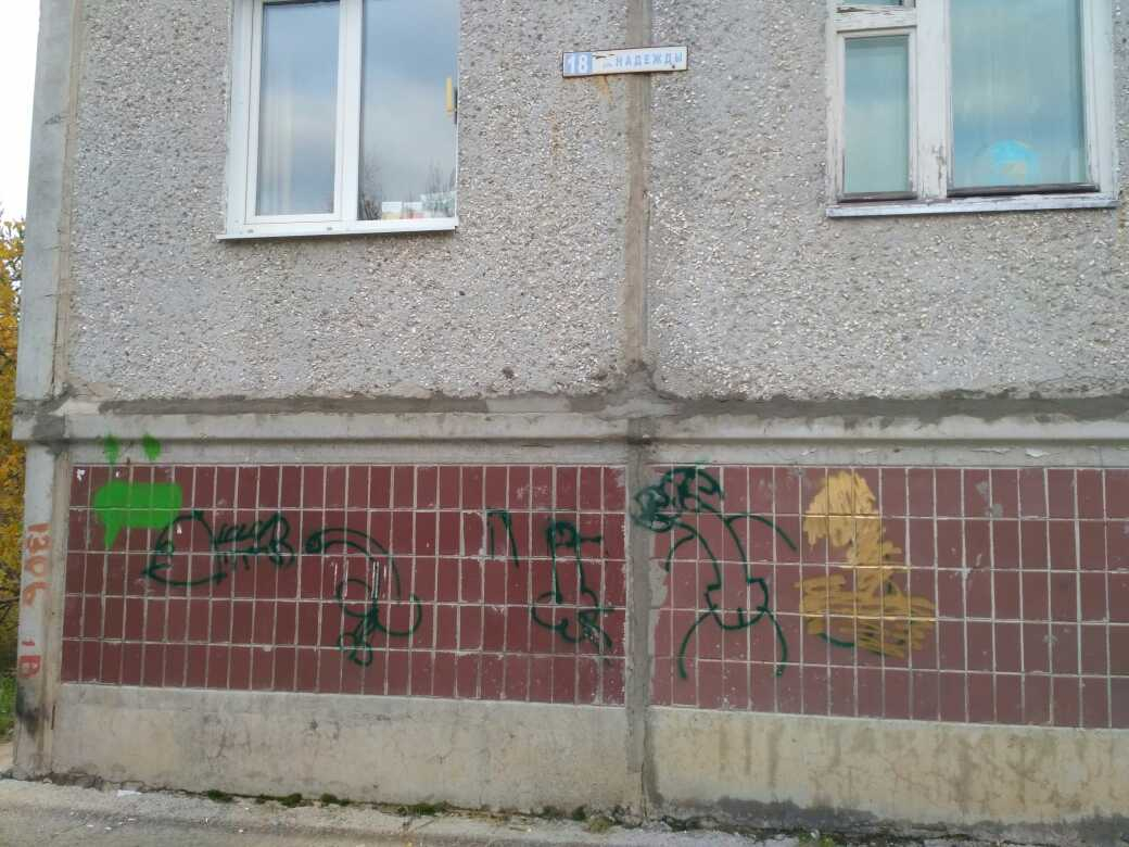 Номер жалобы:42071 Тип жалобы:Прочее Название объекта:Жкх Регион:Иркутская Город:Усть-Илимск Адрес:ул. Надежды, 18 Описание жалобы:Надписи на фасаде Статус: