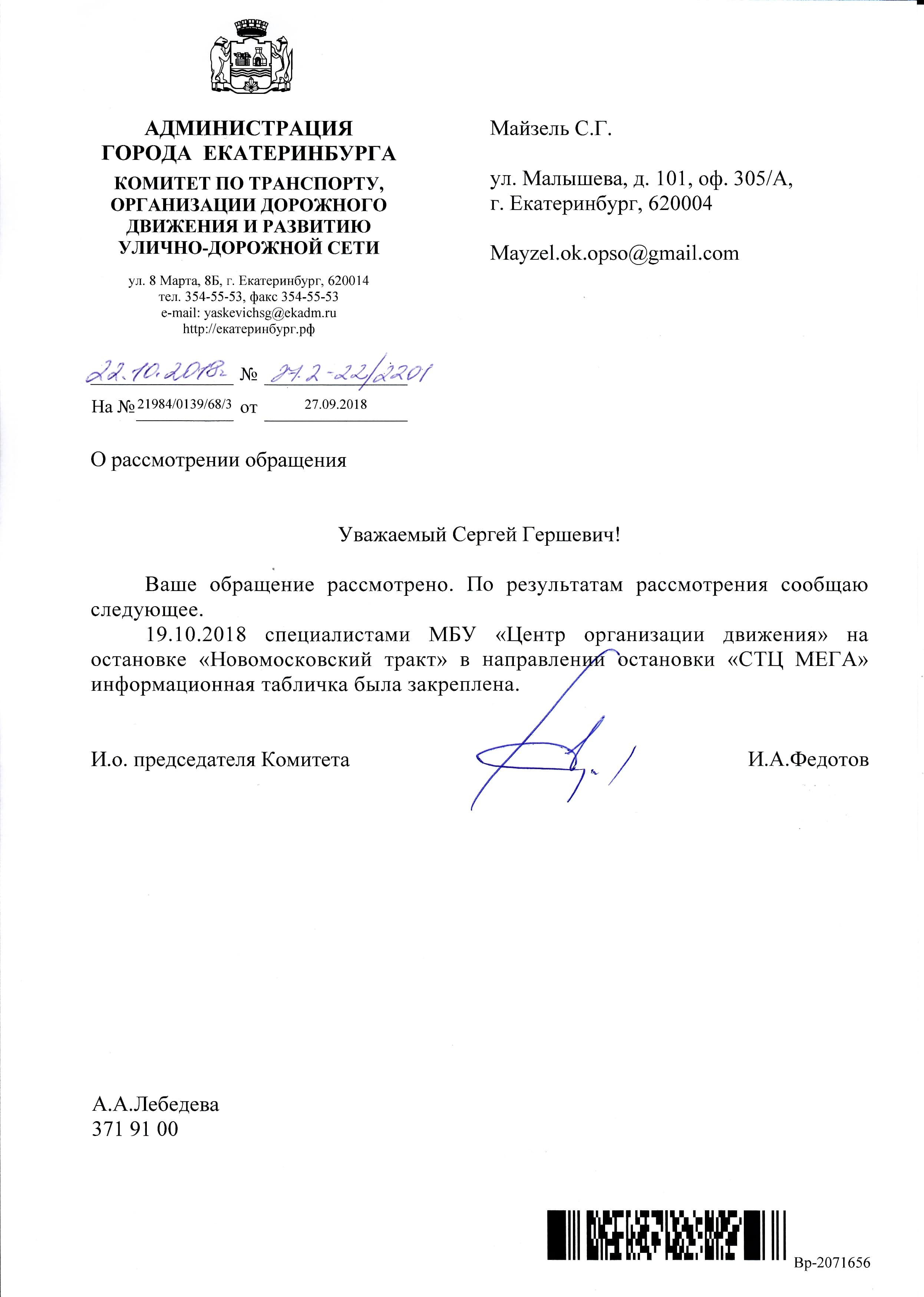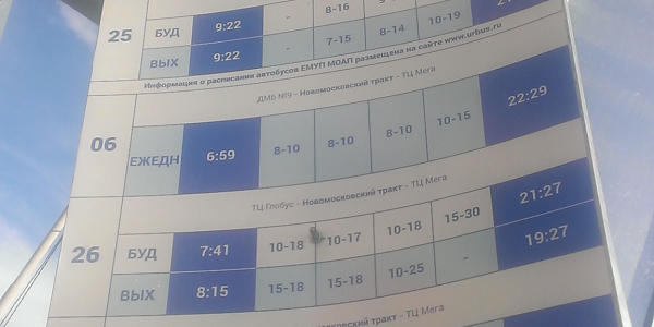 Номер жалобы:41951 Тип жалобы:Прочее Название объекта:Мэрия Регион:Свердловская область Город:Екатеринбург Адрес:улица Металлургов, 46к1 Описание жалобы:Плохо закреплена табличка с расписанием на остановке «Новомосковский тракт» в сторону СТЦ «Мега». Статус: