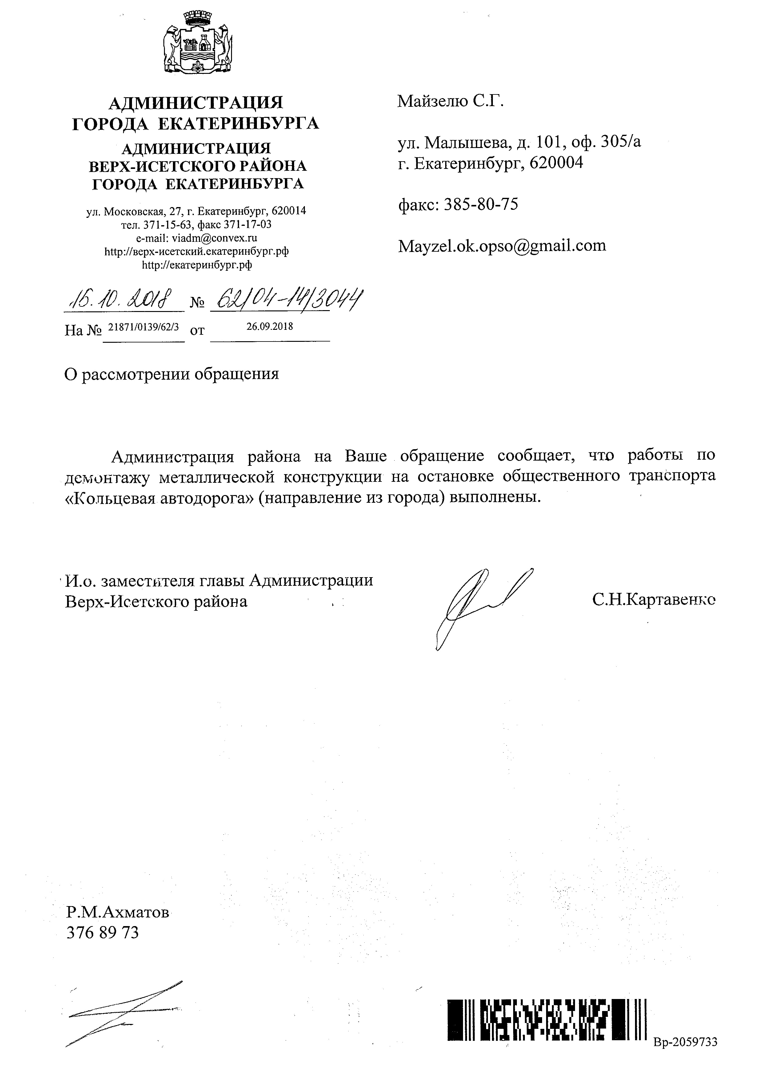 Номер жалобы:41955 Тип жалобы:Прочее Название объекта:Мэрия Регион:Свердловская область Город:Екатеринбург Адрес:улица Металлургов, 46 Описание жалобы:После демонтажа остановочного комплекса на конечной остановке «Новомосковский тракт» оставлен фундамент. Статус: