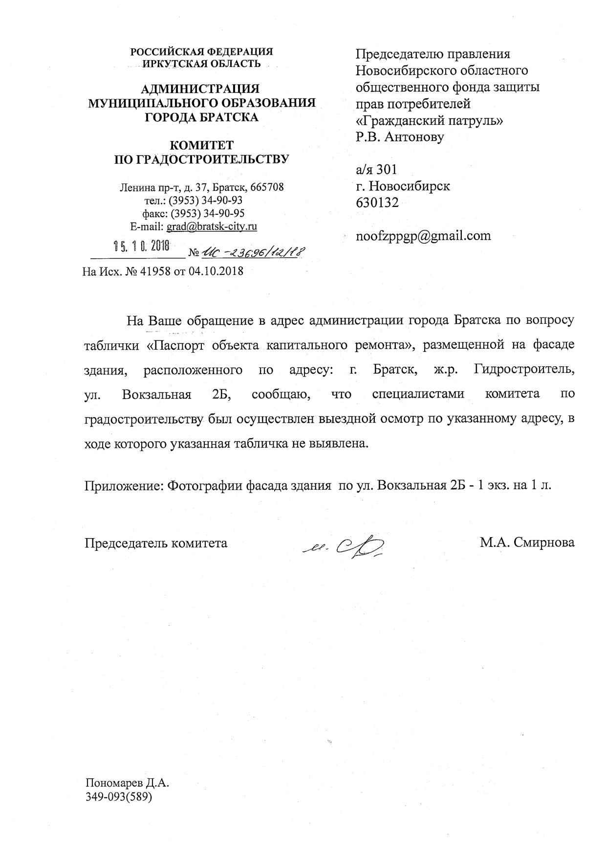 Номер жалобы:41958 Тип жалобы:Прочее Название объекта:Спецреммонтаж Регион:Иркутская область Город:Братск Адрес:ул. Вокзальная, 2-б Описание жалобы:Таблички убирать видимо не надо Статус: