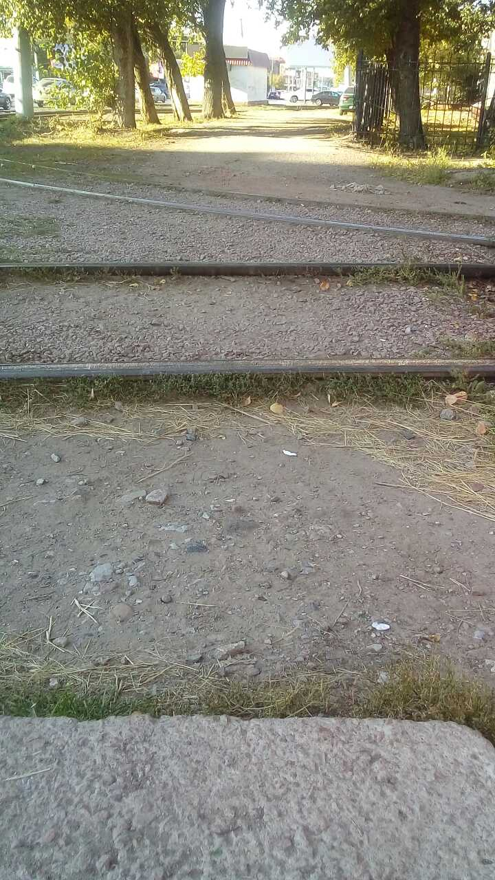 Трамвайные пути не имеют нормального перехода. Рельсы возвышаются и являются серьёзным препятствием для пожилых и маломобильных. Кроме того плита с канализационным колодцем также является препятствием. И далее бордюрный камень тротуара у здания по маршала Жукова 65
