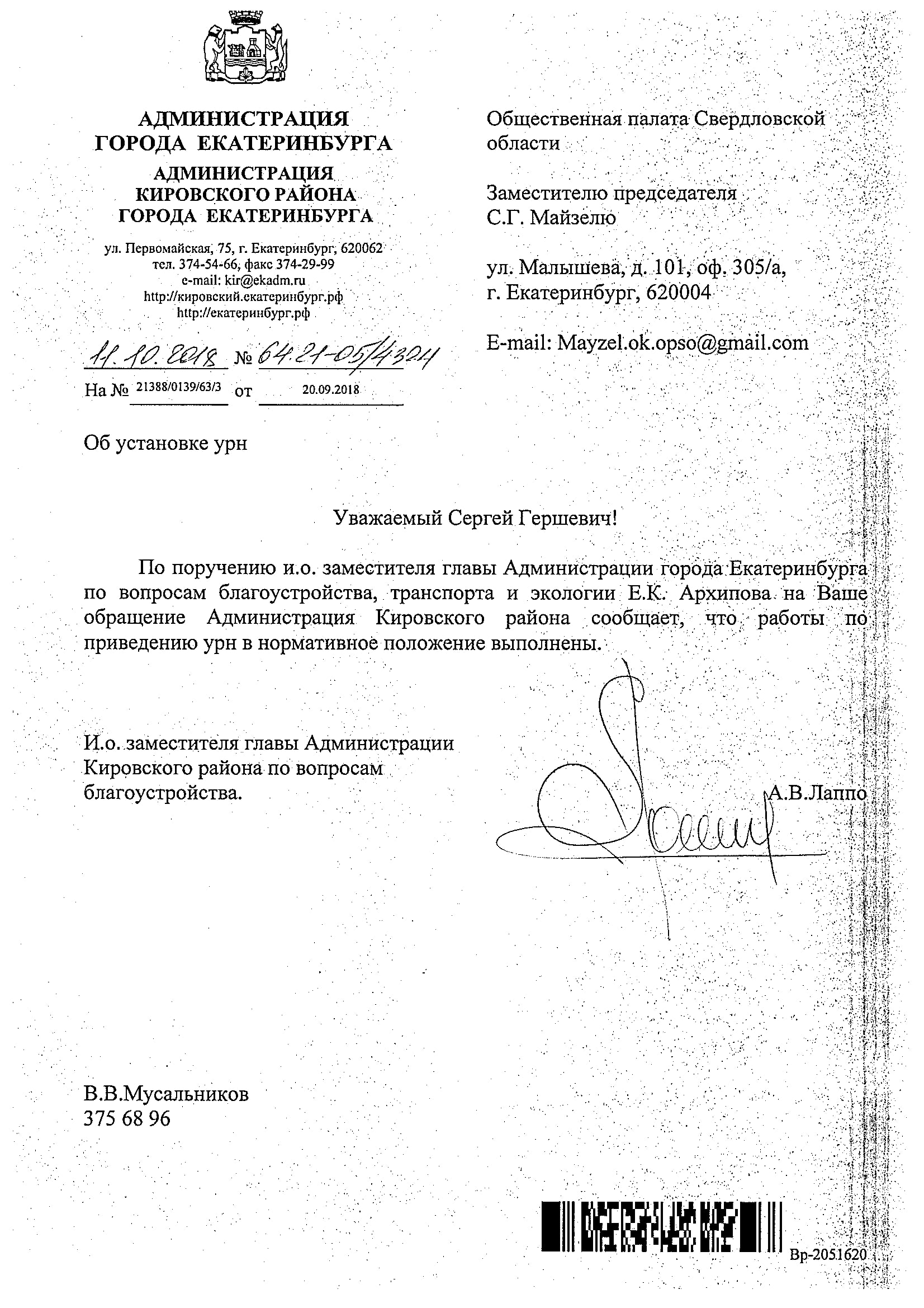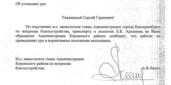 Номер жалобы:41698 Тип жалобы:Прочее Название объекта:Мэрия Регион:Свердловская область Город:Екатеринбург Адрес:улица Карла Либкнехта Описание жалобы:В районе остановки «ТЮЗ» в направлении остановки «Архитектурная академия» установлено две урны. Одна находится за остановочным навесом, вторая на газоне. К обеим урнам невозможен доступ напрямую с посадочной площадки, и происходит вытаптывание газона. Необходимо переместить урны на посадочную площадку. Статус:
