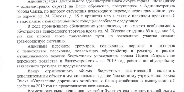 Номер жалобы:41689 Тип жалобы:Прочее Название объекта:? Регион:Омская область Город:Омск Адрес:ул. Маршала Жукова, 65 Описание жалобы:В прошлом году подавал жалобу.