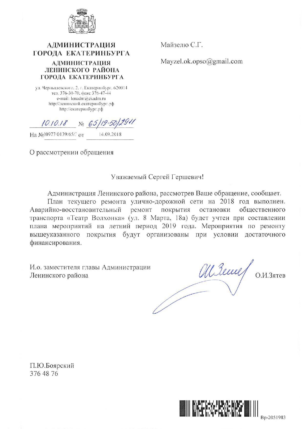 Номер жалобы:41386 Тип жалобы:Прочее Название объекта:Мэрия Регион:Свердловская область Город:Екатеринбург Адрес:улица Малышева, 18 Описание жалобы:Под навесом на остановке «Театр „Волхонка“» выщерблена тротуарная плитка. Статус: