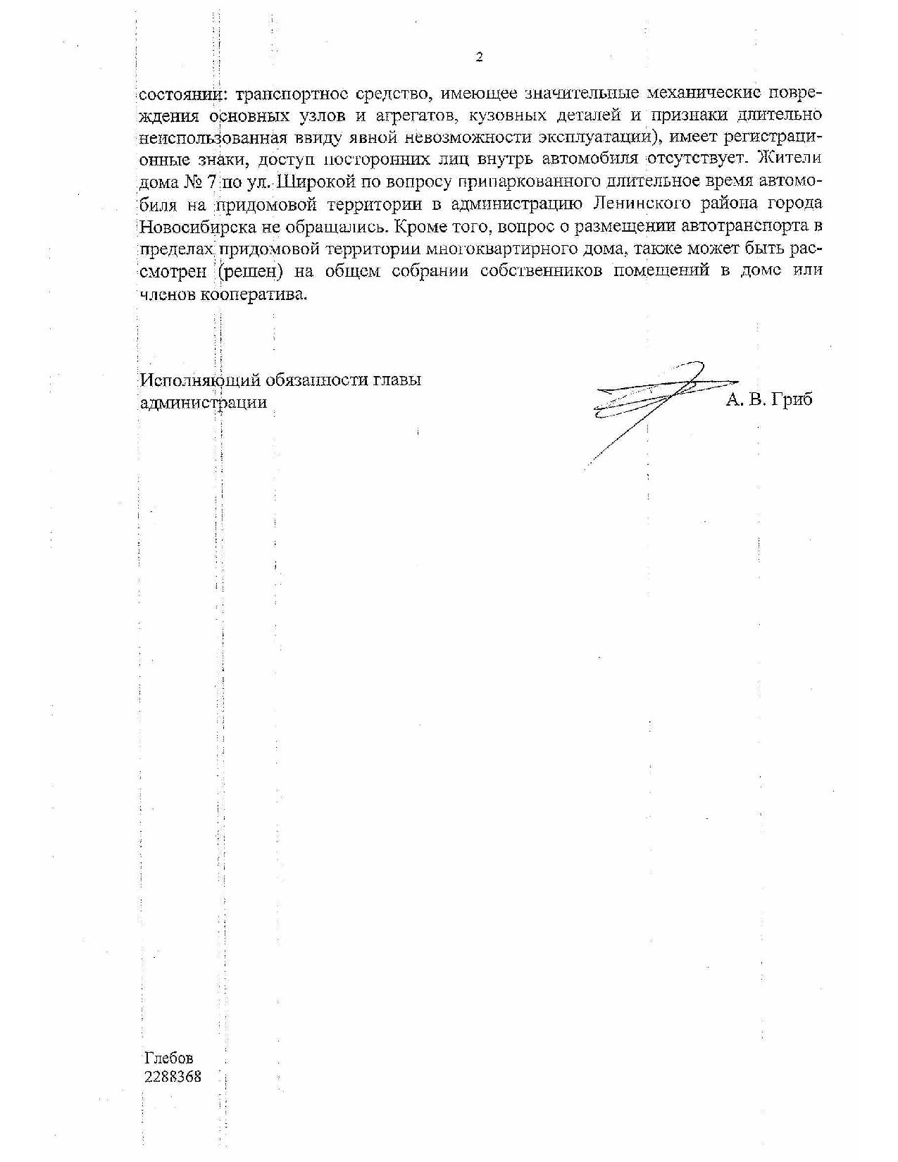 Номер жалобы:41040 Тип жалобы:Прочее Название объекта:Ампер Регион:Новосибирская Город:Новосибирск Адрес:ул. Широкая, 7 Описание жалобы:Дрбрый день. Прошу подсказать как решать вопросы с брошенными машинами во дворах. Стоит во дворе безхозно более 5 мес. Статус: