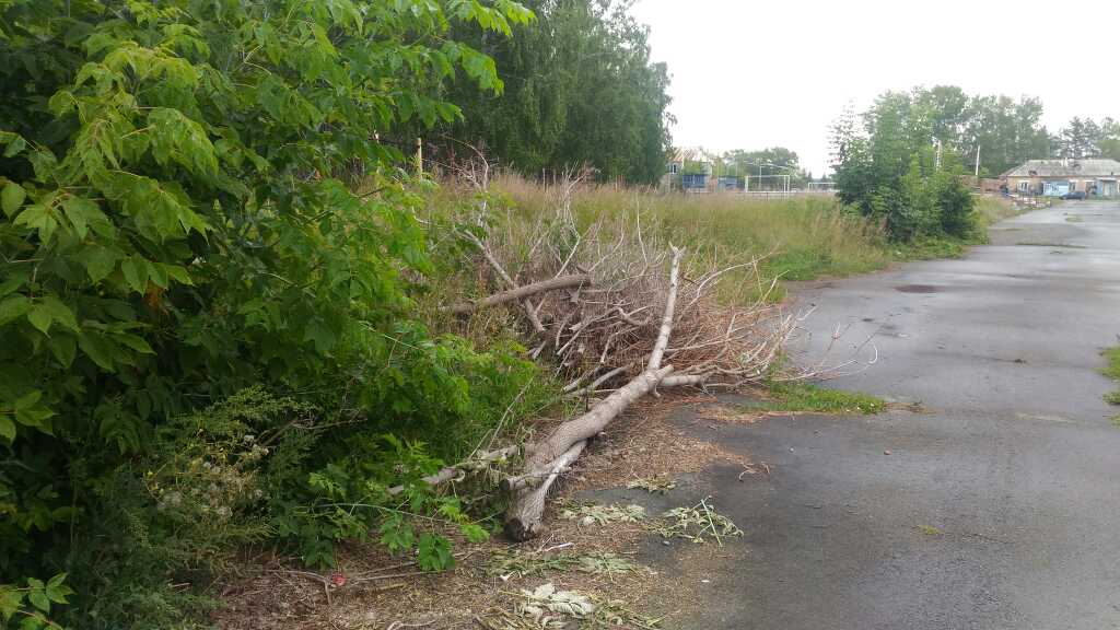 Также, в самом конце стадиона (который около 1 школы), возле трибун, лежат спиленые ветви деревьев, уже более года.
