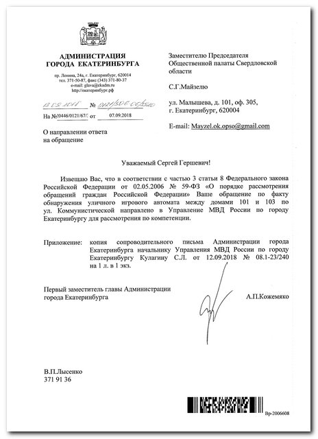 Номер жалобы:41055 Тип жалобы:Прочее Название объекта:Полиция Регион:Свердловская область Город:Екатеринбург Адрес:Коммунистическая улица, 101 Описание жалобы:На нечётной стороне улицы Коммунистической между домами 101 и 103 установлен игровой автомат. Статус: