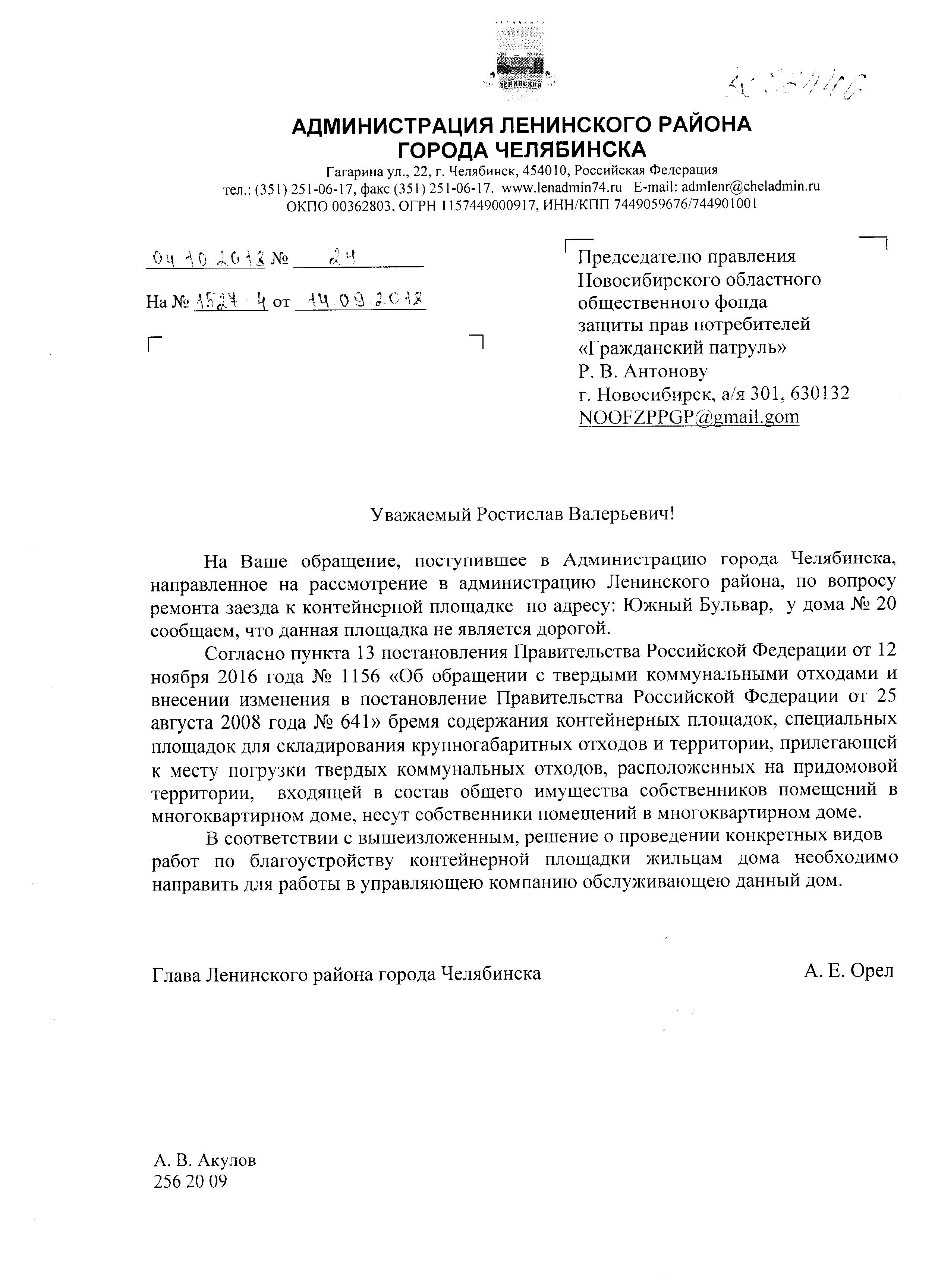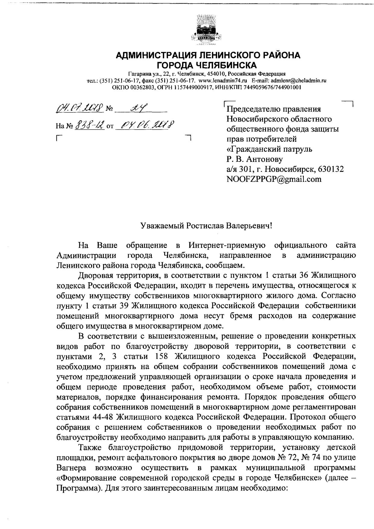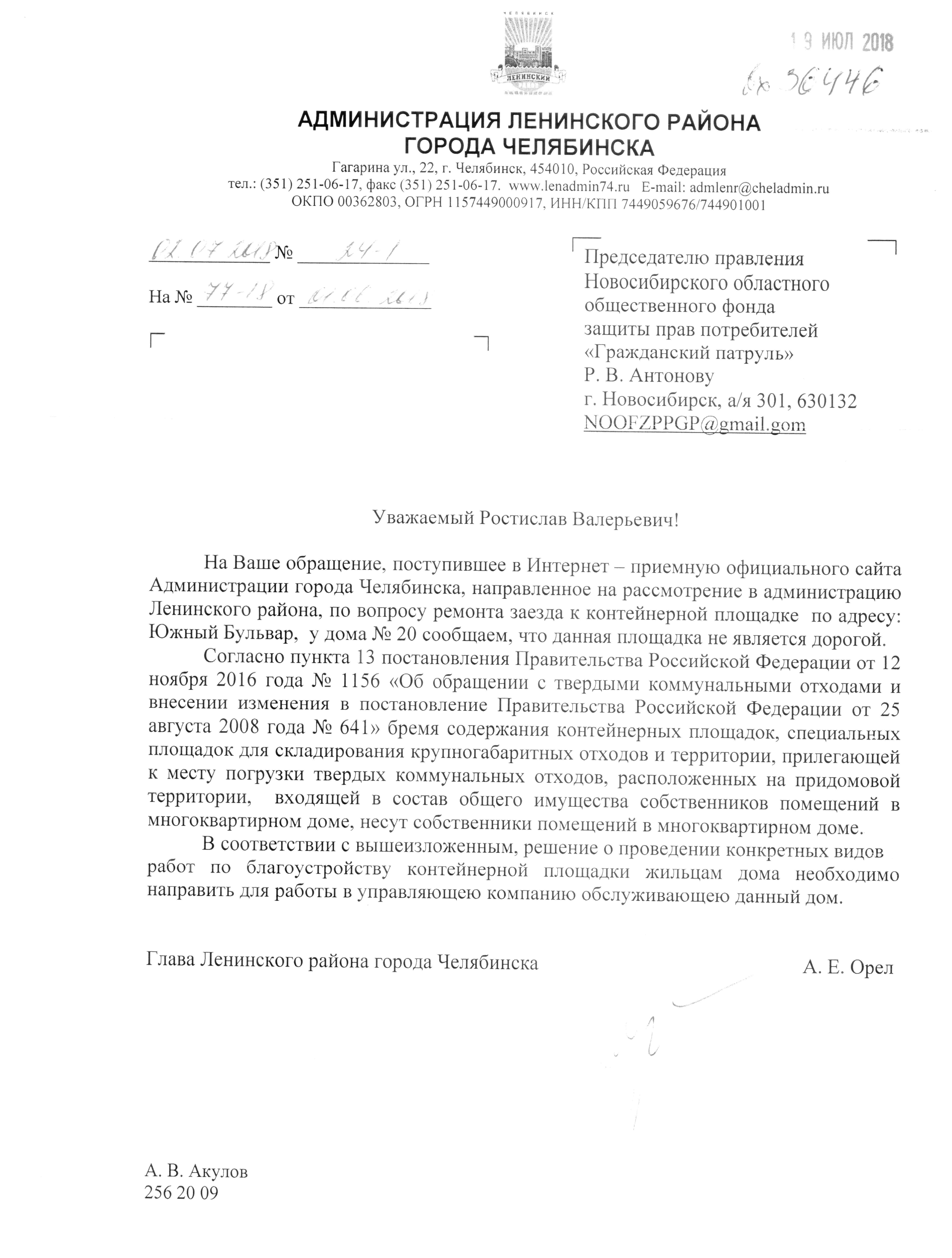Номер жалобы:36725 Тип жалобы:Ямы во дворе Название объекта:Администрация Ленинского Района Города Челябинска Регион:Челябинская область Город:Челябинск Адрес:ул. Ереванская, 18 Описание жалобы:В указанном месте возле дома 18 по улице Ереванской многочисленные ямы в дороге, в которых убразуется большая лужа,что некомфортно как для пеших граждан района, так и для транспортных средств. Просим обновить асфальтовое покрытие в данном месте. Статус:
