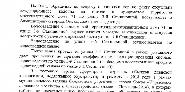 Номер жалобы:36617 Тип жалобы:Ямы во дворе Название объекта:Жкх Регион:Омская область Город:Омск Адрес:3-я Станционная ул., 71 Описание жалобы:Нет ливневой канализации Статус:
