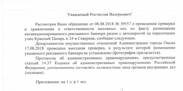 Номер жалобы:39557 Тип жалобы:Прочее Название объекта:Мэртя Регион:Омская область Город:Омск Адрес:ул. Красный Пахарь, Описание жалобы:Реклама на пересечении красный пахарь и 24 северной Статус: