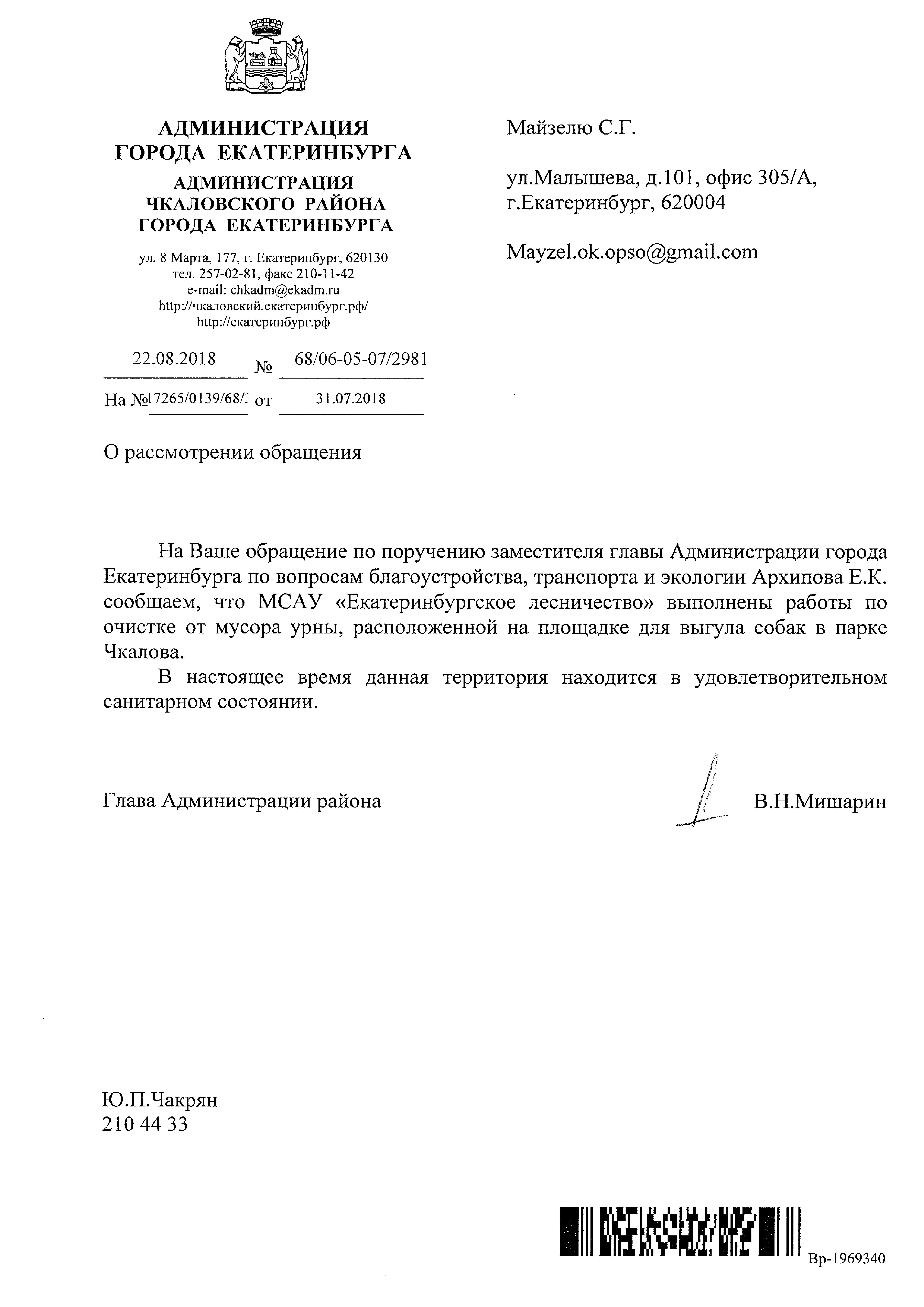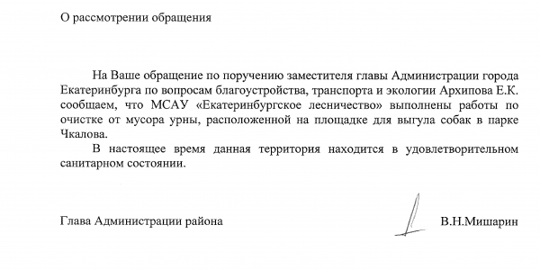 Номер жалобы:39352 Тип жалобы:Прочее Название объекта: Город:Екатеринбург Адрес:Сухумский пер., 10 Описание жалобы:Не вывозится мусор их урны в вольере в парке им. Чкалова