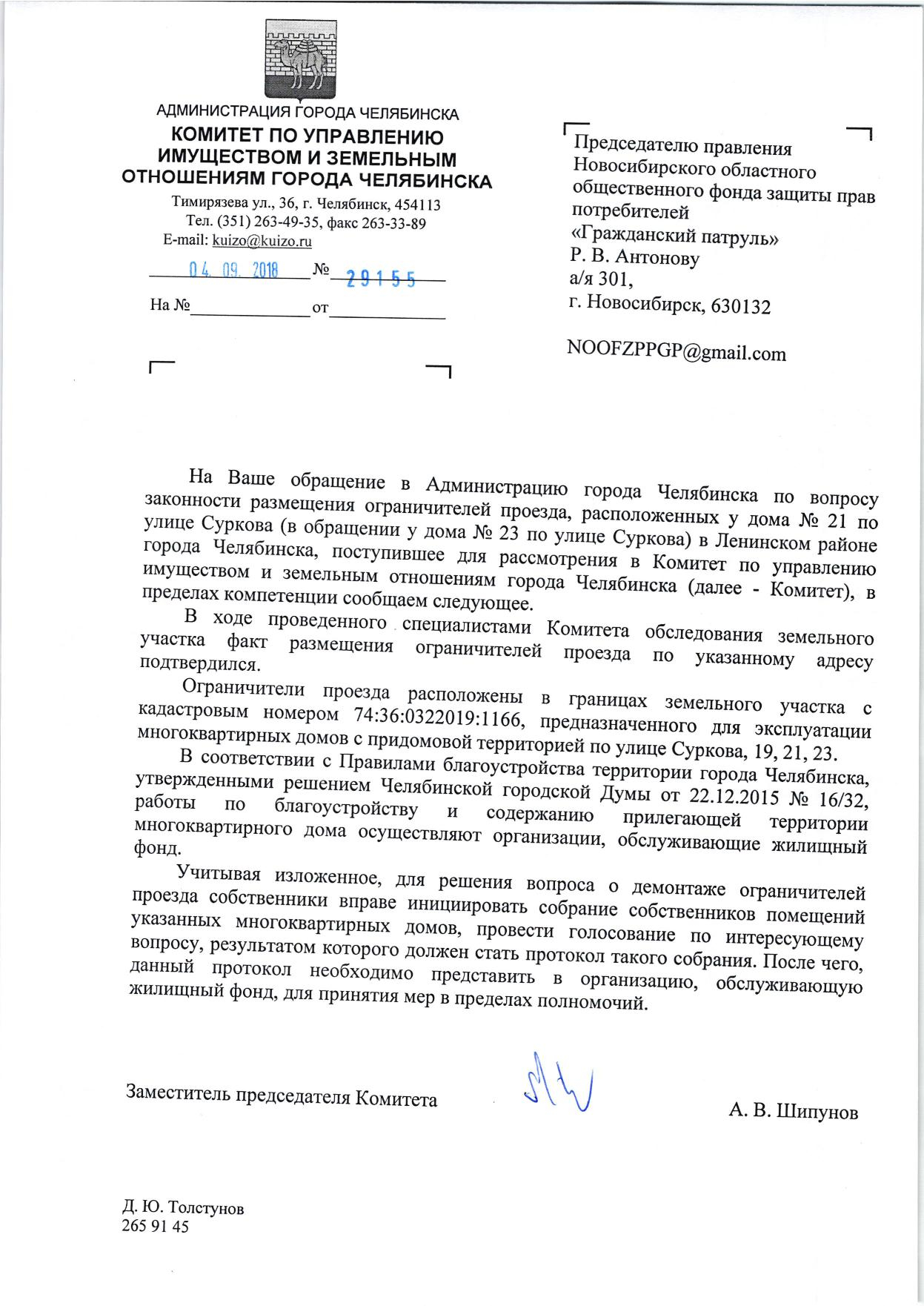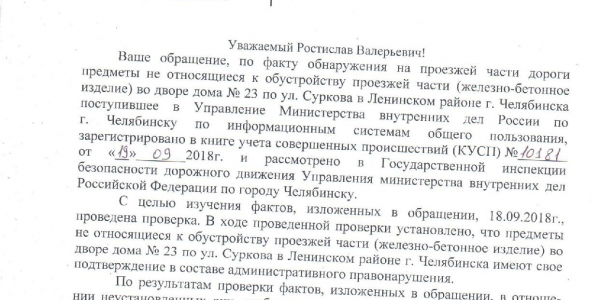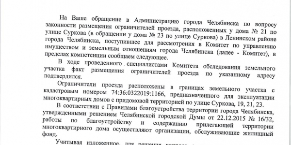 Номер жалобы:39408 Тип жалобы:Прочее Название объекта:Жэк Регион:Челябинская область Город:Челябинск Адрес:ул. Суркова, 23 Описание жалобы:Незаконное Ограничение Проезда Спецтранспорта Статус: