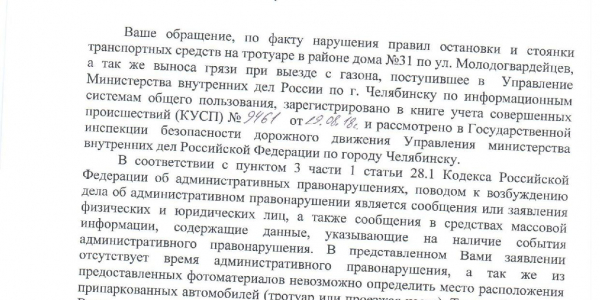 Номер жалобы:39362 Тип жалобы:Прочее Название объекта: Регион:Челябинская область Город:Челябинск Адрес:ул. Молодогвардейцев, 31 Описание жалобы:Автомобилист оставил свойVolkswagen на тратуаре