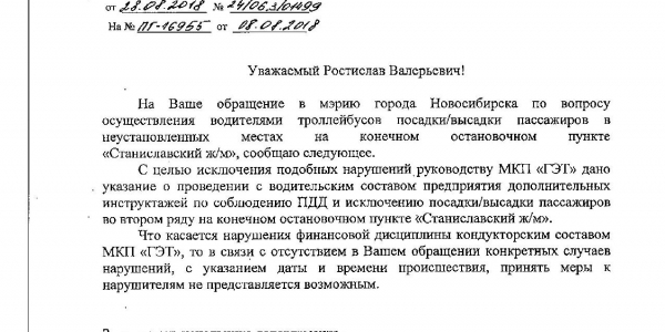 Номер жалобы:39423 Тип жалобы:Прочее Название объекта:Гэт Регион:Новосибирская область Город:Новосибирск Адрес:ул. Станиславского, 40/1 Описание жалобы:Остановка троллейбуса вдали от остановочной платформы. Кондуктор через одного пассажирам не выдаёт билет, и берет деньги за проезд Статус: