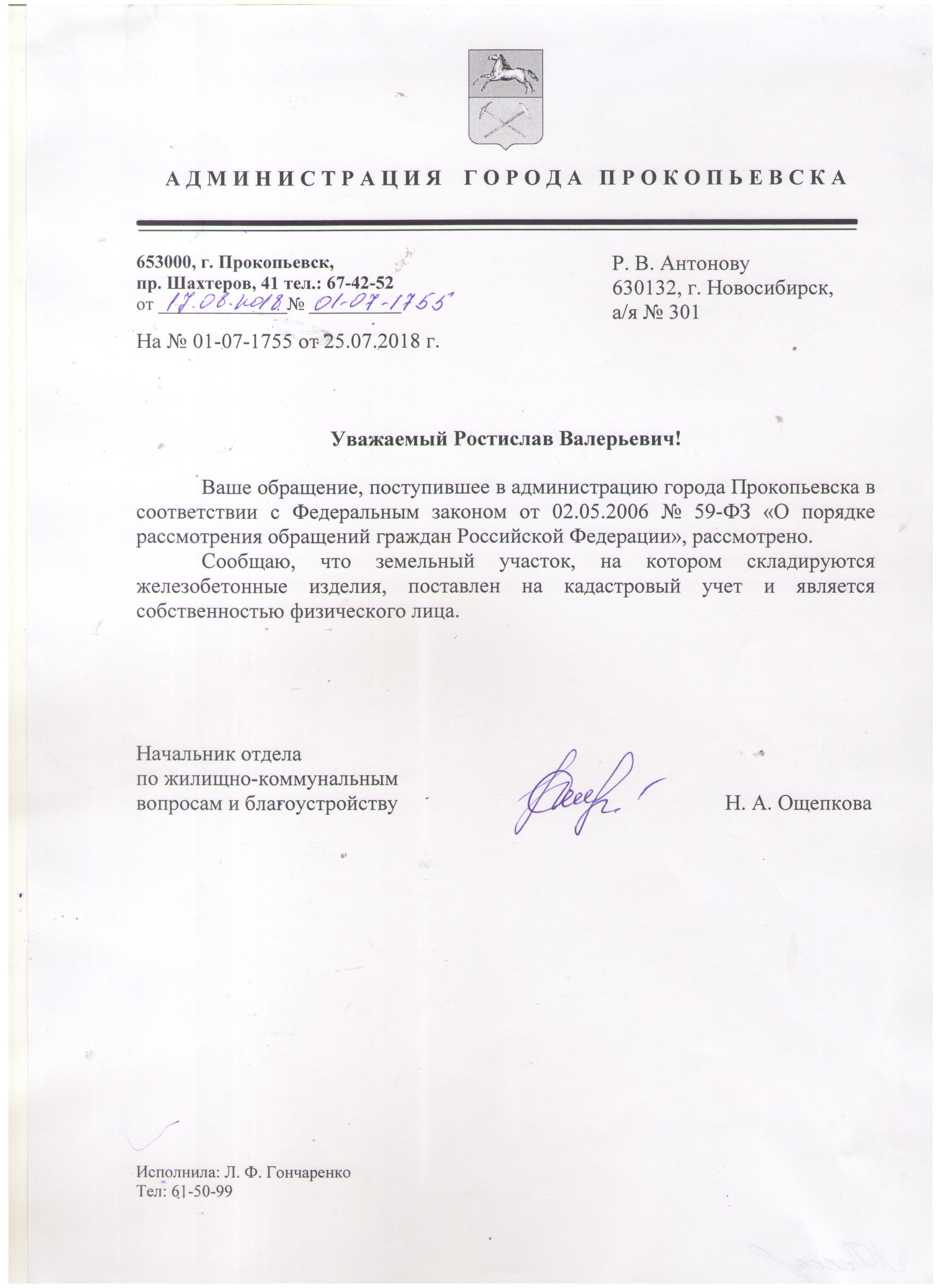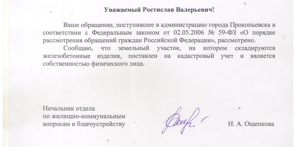 Номер жалобы:39034 Тип жалобы:Прочее Название объекта:7 Регион:Кемеровская область Город:Прокопьевск Адрес:ул. Кустарная, 33 Описание жалобы:Железобетонные плиты во дворе многоквартирного дома. Южный торец дома Статус: