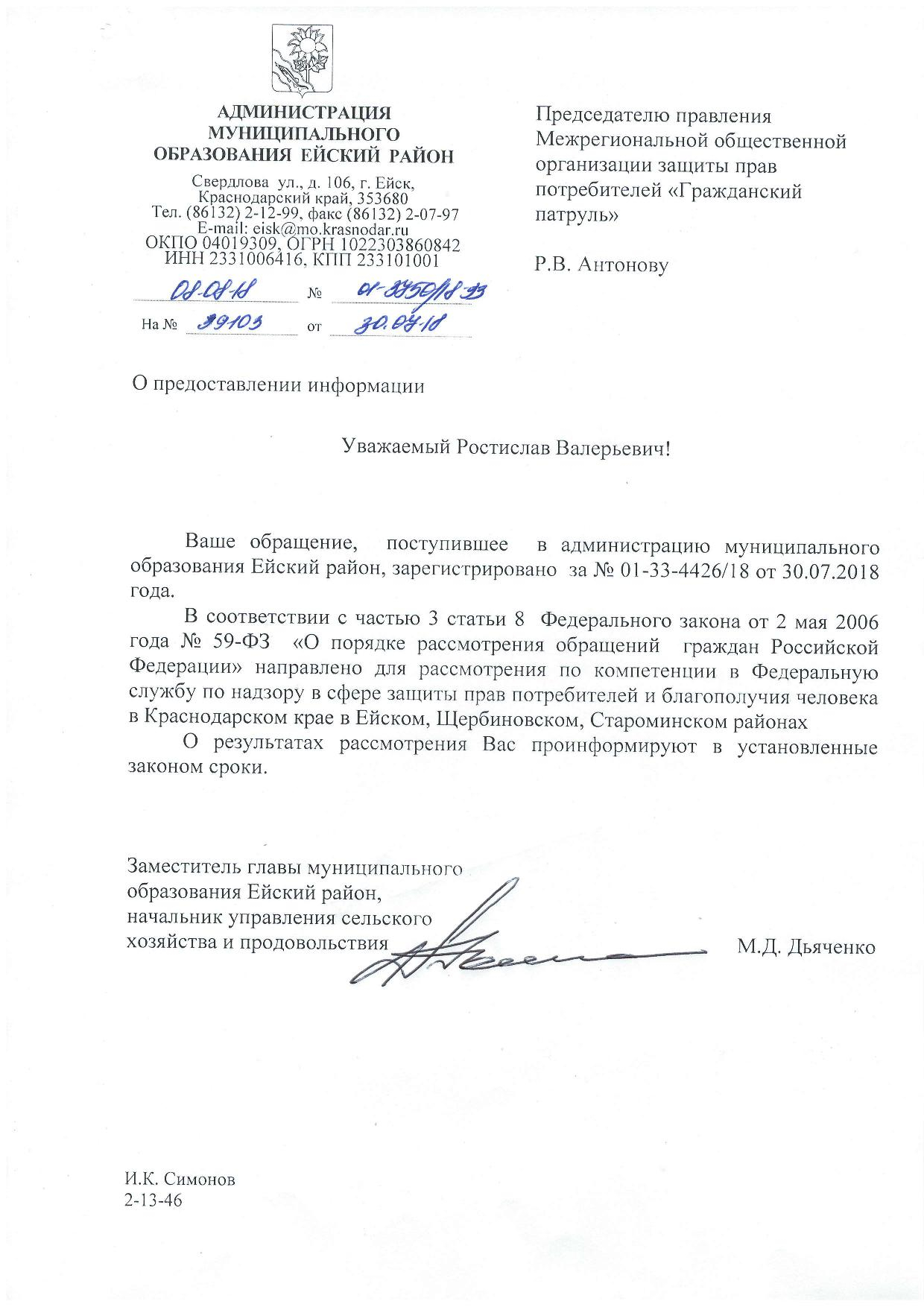 Номер жалобы:39103 Тип жалобы:Прочее Название объекта:Центральный Рынок Города Ейска Регион:Краснодарский край Город:Ейск Адрес:улица Карла Либкнехта, 48 Описание жалобы:По адресу: г.Ейск, Краснодарский край, улица Карла Либкнехта, 48 в ходе посещения Центрального Рынка города Ейска, выявлено следующее: у большенства продовцов отсутствуют бэйджи, спецодежда, шапочки и перчатки для работы с товарами. Так же в магазинах на территории Рынка расстояние мезду стелажами не соответствует норме (норма - 1м. 40см.) Так же такие товары как овощи, фрукты, не прекрыты и на них могут сесть насекомые. Статус: