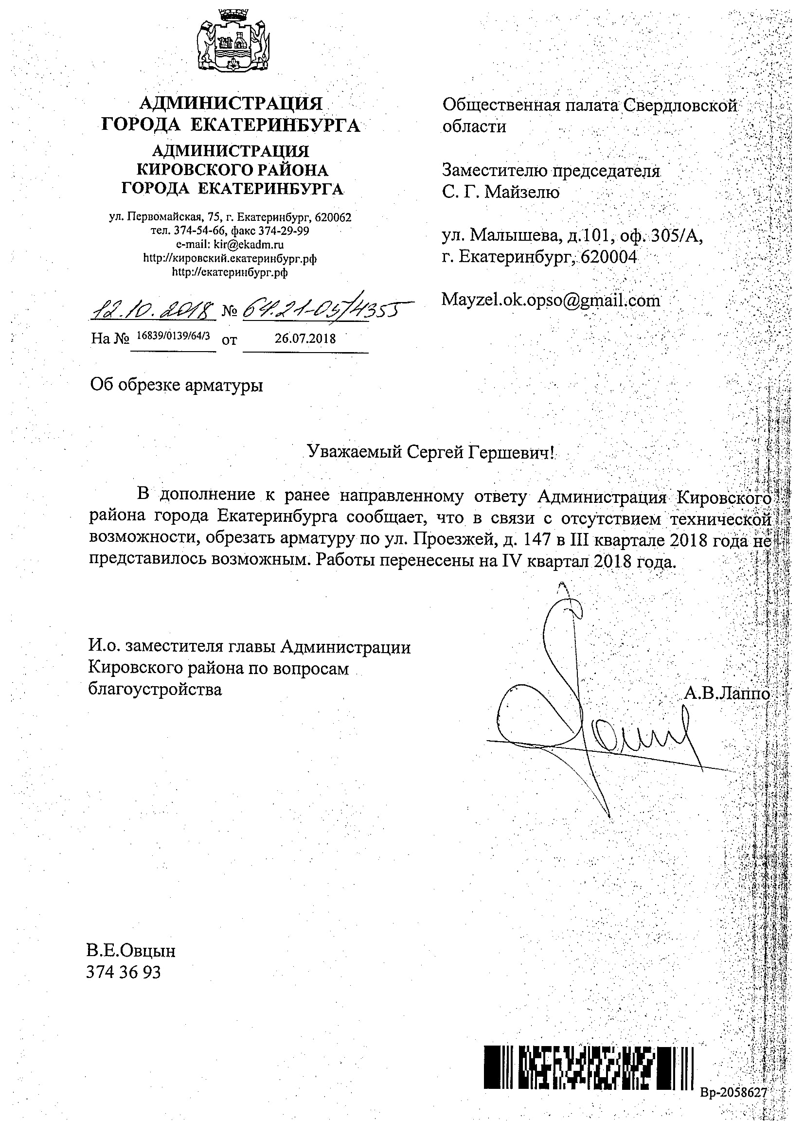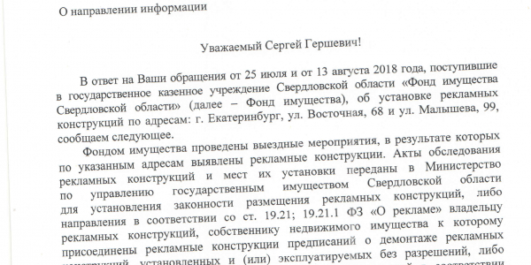 Номер жалобы:39105 Тип жалобы:Прочее Название объекта:Администрация Екатеринбурга Город:Екатеринбург Адрес:Екатеринбург, Восточная улица, 68 Описание жалобы:прошу проверить законность размещения рекламы в этом месте по ул. Восточная и по ул. Малышева (рядом с теми, что на фото, ближе к мосту) Статус: