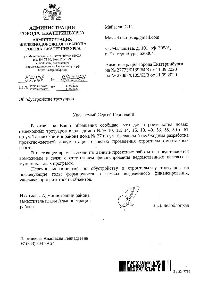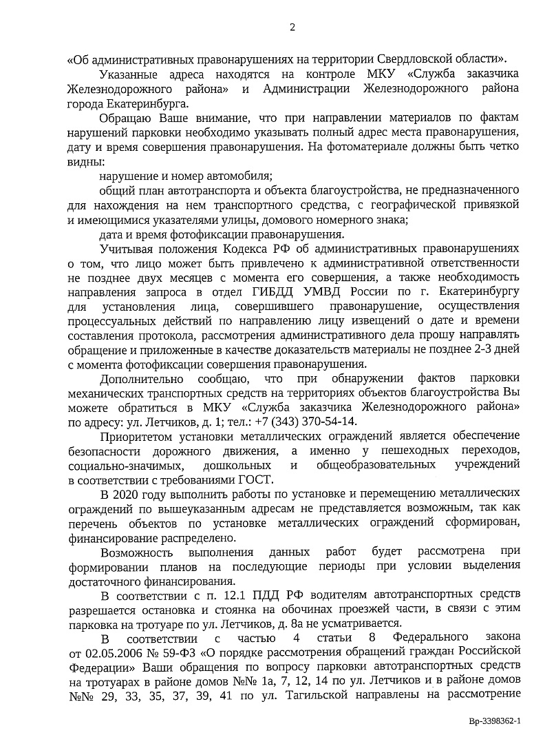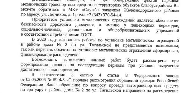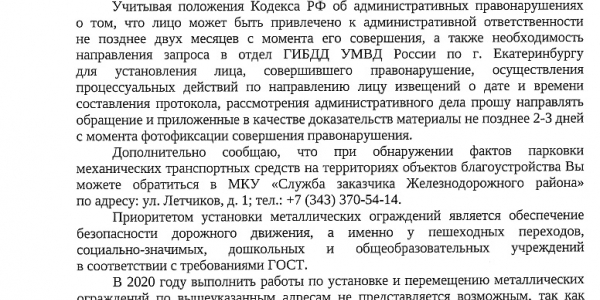 Номер жалобы:69002 Тип жалобы:Прочее Название объекта:мэрия Регион:Свердловская область Город:Екатеринбург Адрес:улица Лётчиков, 1А Описание жалобы:Стоянка на тротуаре вдоль улицы Пилотной. Статус: