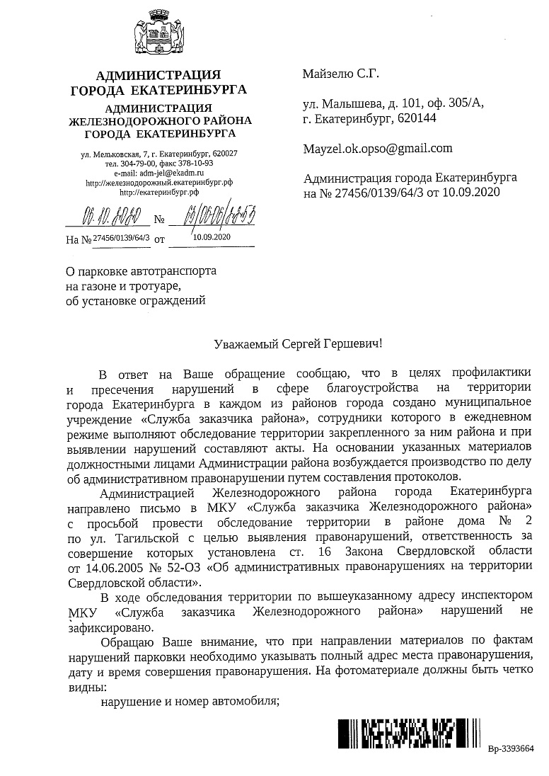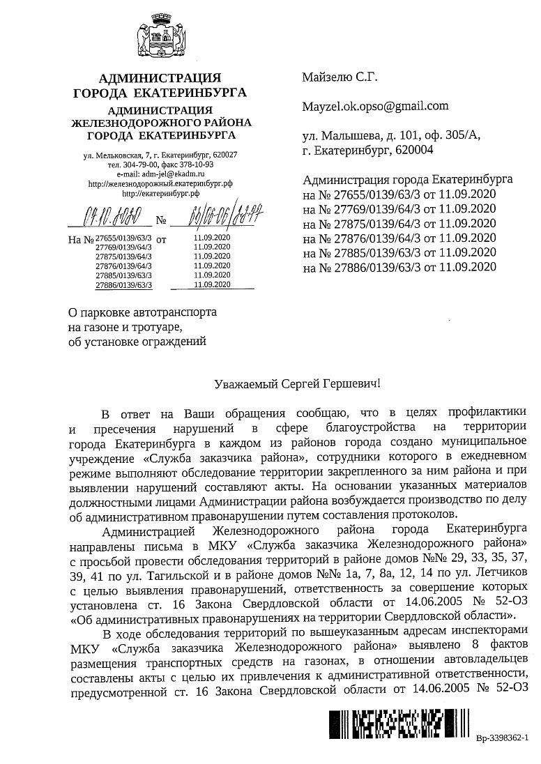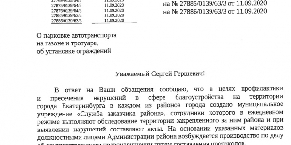 Номер жалобы:69003 Тип жалобы:Прочее Название объекта:мэрия Регион:Свердловская область Город:Екатеринбург Адрес:улица Лётчиков, 8А Описание жалобы:Стоянка на газоне вдоль улицы Тагильской. Статус: