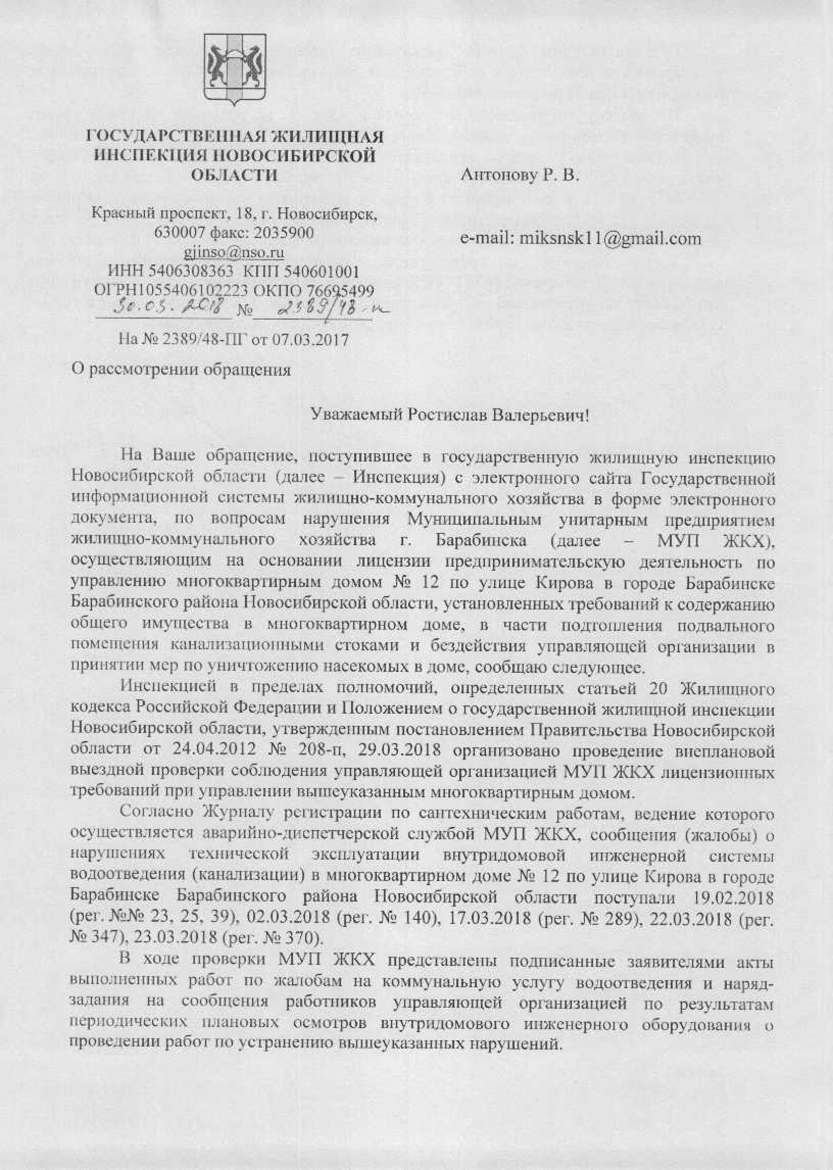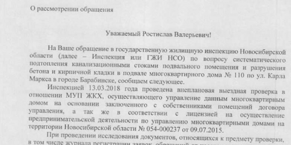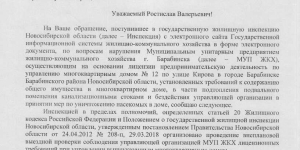Номер жалобы:35656 Тип жалобы:Иные проблемы ЖКХ Название объекта:Муп Жкх Регион:Новосибирская область Город:Барабинск Адрес:ул. Кирова, 48 Описание жалобы:В подвале с нового года текут канализационные трубы, сейчас полный подвал воды. Статус: