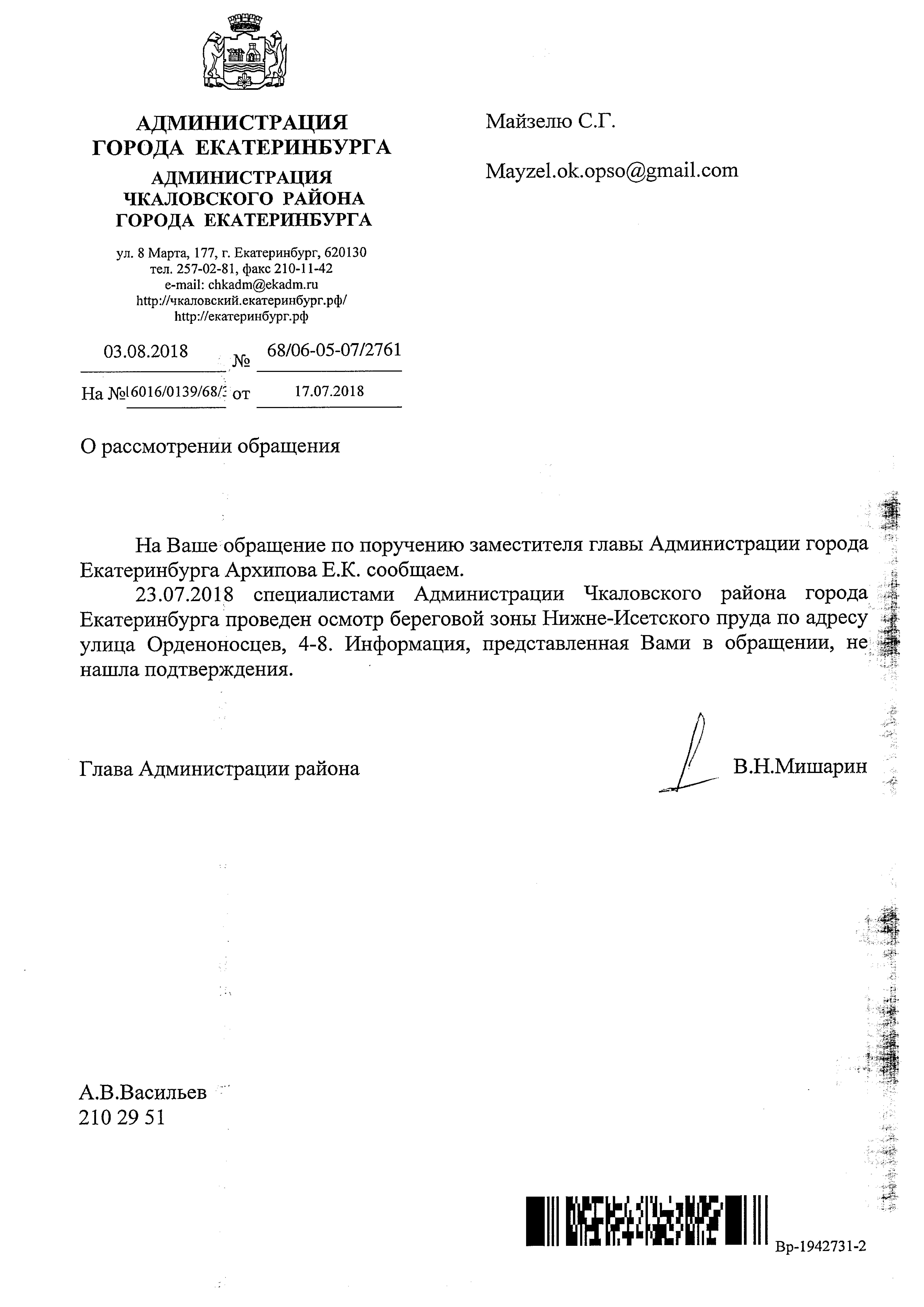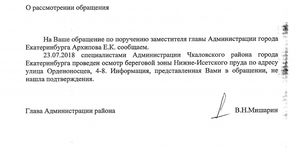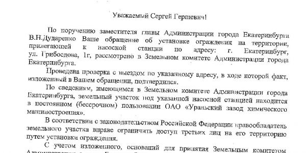 Номер жалобы:38103 Тип жалобы:Прочее Название объекта:Министерство природных ресурсов Свердловской области Регион:Свердловская область Город:Екатеринбург Адрес:улица Орденоносцев, 1 Описание жалобы:В водоохранной зоне Нижнеисетского пруда непосредственно на его берегу построено здание автосервиса «У дяди Вани». Это является нарушением п. 5 ч. 15 ст. 65 Водного кодекса РФ. В нарушение ст. 6 Водного кодекса РФ территория автосервиса расположена в береговой полосе пруда, и на неё ограничен доступ граждан путём установки забора с колючей проволокой. Некоторые звенья забора закреплены на деревьях, произрастающих вдоль берега. Статус: