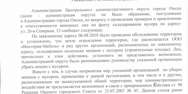 Номер жалобы:38102 Тип жалобы:Прочее Название объекта:Министерство природных ресурсов Свердловской области Регион:Свердловская область Город:Екатеринбург Адрес:Грибоедова, 1г Описание жалобы:В нарушение ст. 6 Водного кодекса РФ ограничен доступ к береговой полосе Нижнеисеского пруда у насосной станции путём установки забора. Статус: