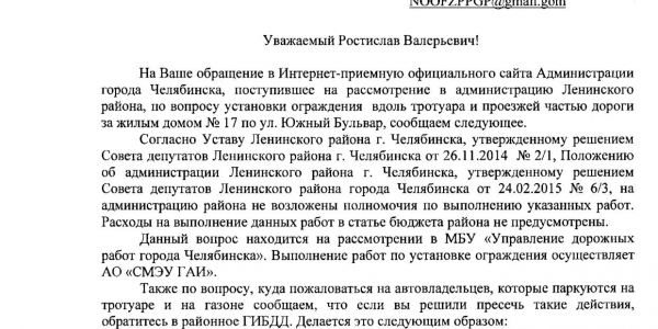 Номер жалобы:37743 Тип жалобы:Прочее Название объекта:южурплстройсервис Регион:Челябинская область Город:Челябинск Адрес:ул. Южный Бульвар, 17 Описание жалобы:1459-8 парковка на газоне, ямы, разбитые бордюры, где водоотводы?! лужи, грязь, пыль, астма. Статус: