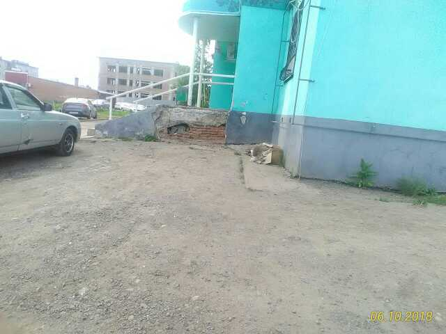 Номер жалобы:37232 Тип жалобы:Прочее Название объекта:6 Регион:Кемеровская область Город:Металлургов Адрес:Unnamed Road, Описание жалобы:Крыльцо пивнушки Крюгер в плохом состоянии. Молодежная 12 Статус: