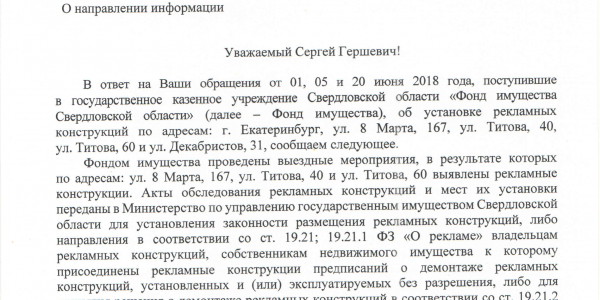 Номер жалобы:37178 Тип жалобы:Прочее Название объекта:. Регион:Свердловская область Город:Екатеринбург Адрес:ул. Титова, 40 Описание жалобы:Рекламные конструкции на трамвайно-автобусной остановке "Сухоложская". Возможно несогласованные. Закреплены ненадёжно. Создают опасность для прохожих и транспорта. Статус: