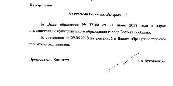 Номер жалобы:37180 Тип жалобы:Прочее Название объекта:Мельников Петр Петрович Город:Братск Иркутской области Адрес:улица Приморская поселка Энергетик Описание жалобы:Гаражный кооператив Приморский нарушает Правила Благоустройства - на прилегающей территории складируется мусор Статус: