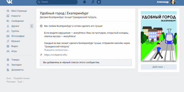 Номер жалобы:35546 Тип жалобы:Прочее Название объекта:Гражданский Патруль Регион:Свердловская область Город:Екатеринбург Адрес:екатеринбург Описание жалобы:https://vk.com/comfy_city на данной странице указан веб сайт civilpatrol.info если вы имеете к этому отношение, то прошу разобраться в ситуации. Администратор этого сообщества блокирует участников без причины, а на просьбу назвать причину добавляет в личный чс. при этом с моей стороны не было нарушений правил сообщества и не позволял себе использовать мат ни разу. при попытке связаться с Романом по любому каналу - он блокируется. Статус: