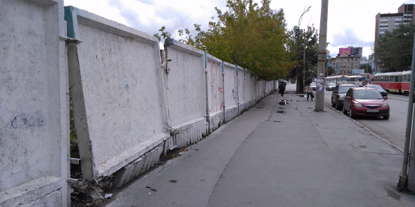 Номер жалобы:9449 Тип жалобы:Ямы на тротуарах Название объекта: Регион:Свердловская область Город:Екатеринбург Адрес:8 Марта, 61 Описание жалобы:Ненадёжно закреплён забор на нечетной стороне улицы 8 Марта на участке от Декабристов до Большакова, при обрушении могут пострадать люди Статус:
