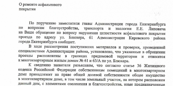 Номер жалобы:9555 Тип жалобы:Ямы на тротуарах Название объекта:Администрация г.Екатеринбурга Город:Екатеринбург Адрес:Екатеринбург, улица Блюхера, 61 Описание жалобы:Ямы на дороге Статус: