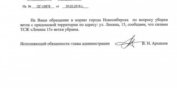 Номер жалобы:34760 Тип жалобы:Иные проблемы ЖКХ Название объекта:Управляющая Компания Регион:Новосибирская область Город:Новосибирск Адрес:ул. Ленина, 15 Описание жалобы:Ветки за домом не убраны Статус: