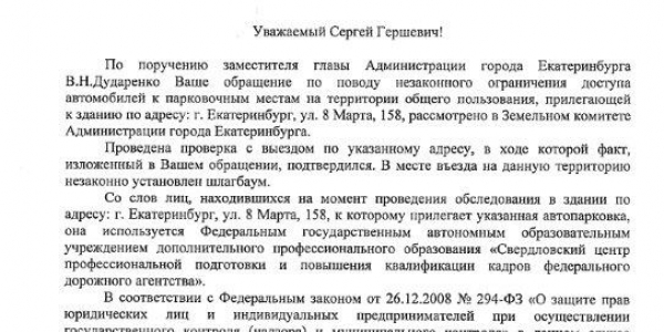 Номер жалобы:34976 Тип жалобы:Прочее Название объекта:Администрация Екатеринбурга Регион:Свердловская область Город:Екатеринбург Адрес:улица 8 Марта, 158 Описание жалобы:На тротуаре установлен шлагбаум, препятствующий проходу пешеходов. Статус: