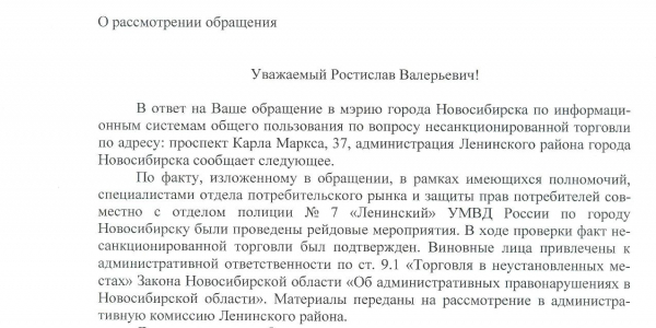 Номер жалобы:33694 Тип жалобы:Прочее Название объекта:Не Установлено Регион:Новосибирская область Город:Новосибирск Адрес:пр. Карла Маркса, 37 Описание жалобы:Незаконная торговля на студенческой фруктами и овощами. Который год уже торгуют. От них одна грязь и беспорядок. Юр лица нет, документов нет. Полный бардак. Плюс ко всему, бросили машины свои, пара этих газелей, что на фото, тоже, который год там живут. Колеса пробить, не ездят никуда. Это у них стационарный склад для их продукции. Занимают пара этих грузовиков довольно не мало парковочного места. Властям города должно быть стыдно за такой мусор в городе. Так как "мусорА" не работают, и представители власти тоже, то нафига мы платим налоги, кормим этих дормоедов? Статус: